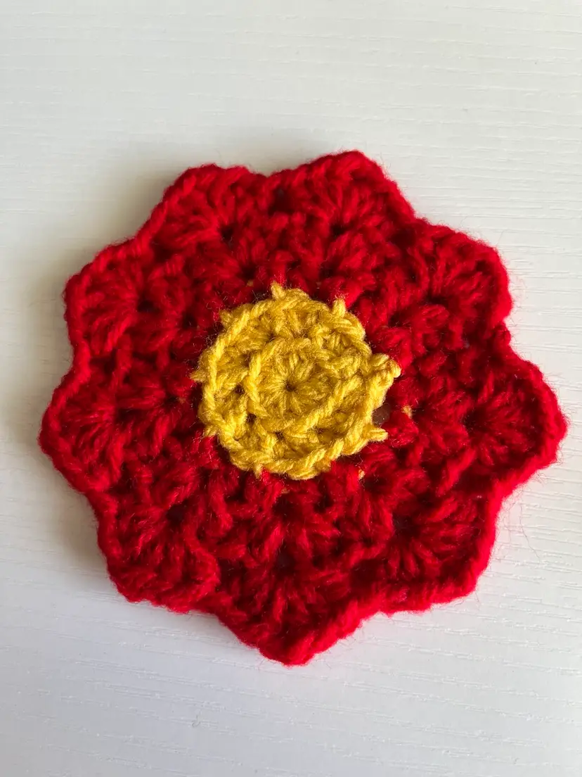 A set of four crocheted sunflower coasters made with acrylic yarn. I can make a custom set for you just message the center color and the petal color to me.