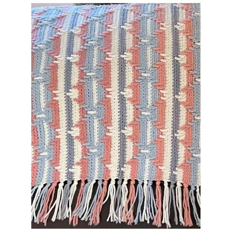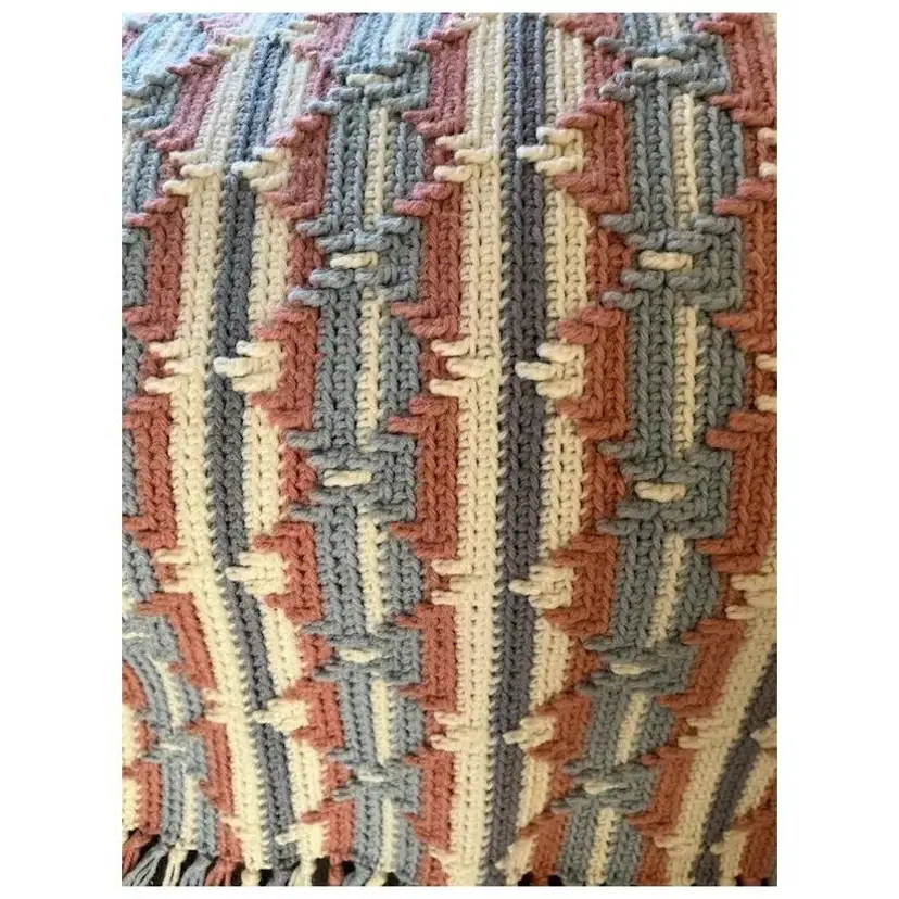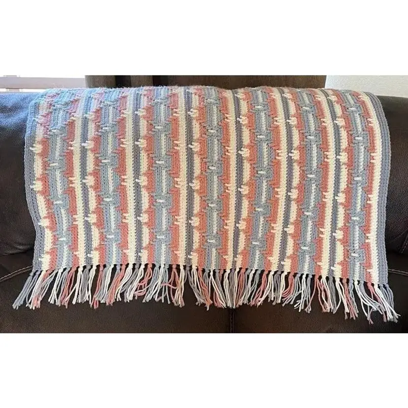 A beautiful crocheted afghan. Handmade. Approximately 52 inches long and 33 inches wide. Experienced crocheting. Nice tight weave. Pre owned. I have washed this item but I have two dogs and two cats in my home in case you are allergic.