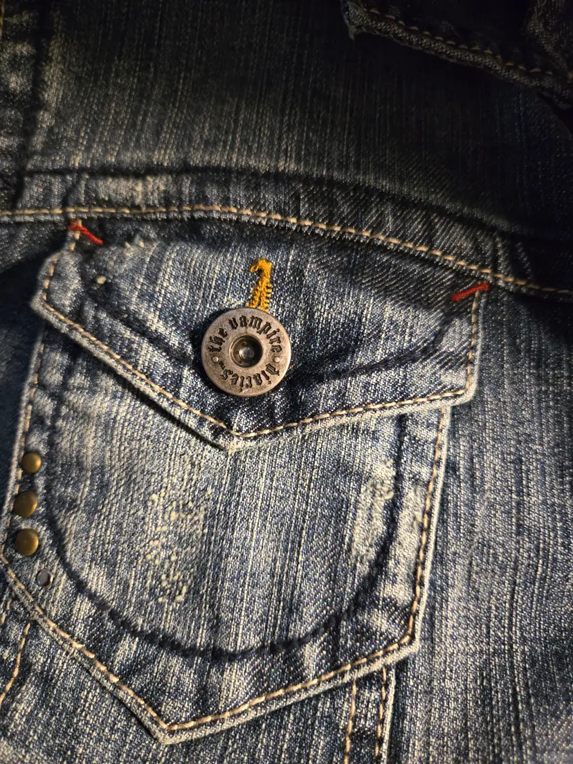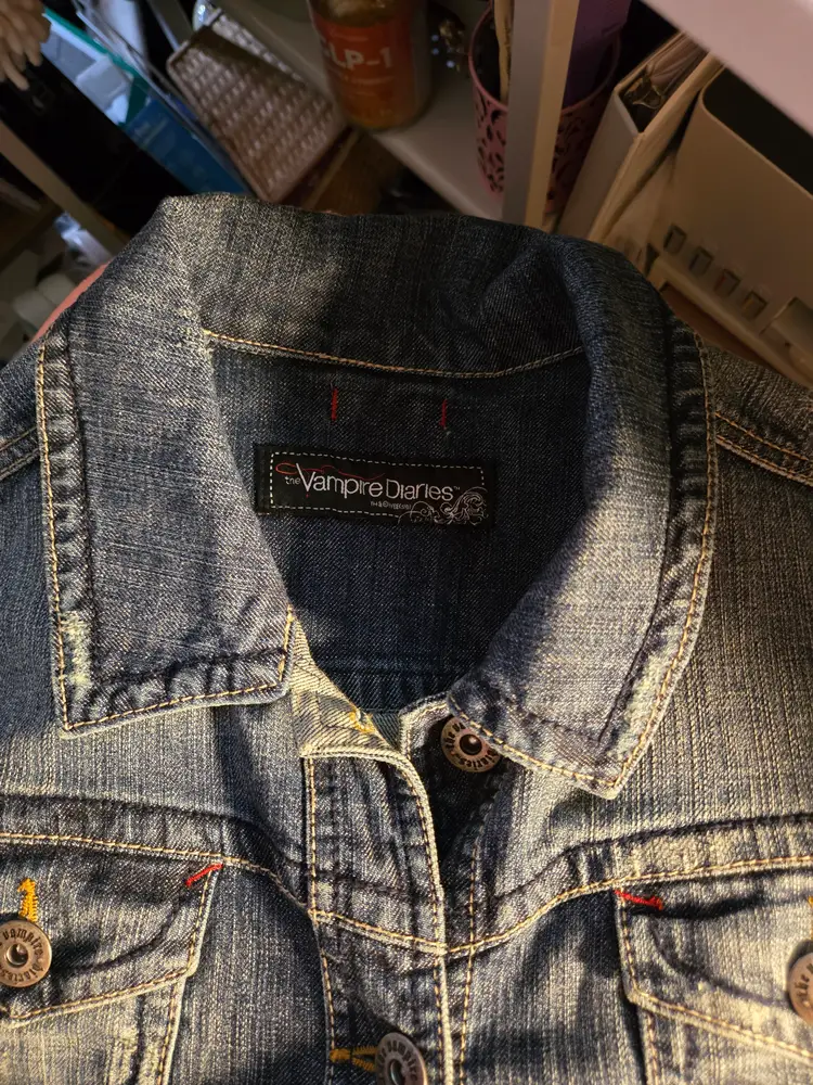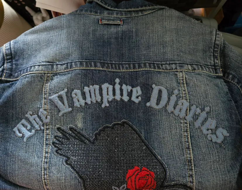 Distress vampire diaries jean jacket. Beautiful details. Never worn. Size size xc but fits like small/medium. Perfect for a fan of the books or tv series