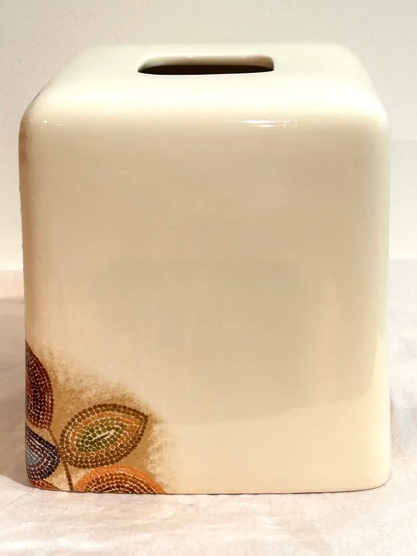 Croscill Bath Mosaic Style Leaf Design. The tissue cover has an earthy modern style that gives a great vibe of minimalism. The intricately printed mini mosaic pattern adds an artful accent to any décor. In beautiful condition. No chips, cracks or paint loss. Very clean, smoke pet free home. Dimensions: 6.25”x6"x 6" Glazed ceramic **my other listings showcase other items of decor including vintage.