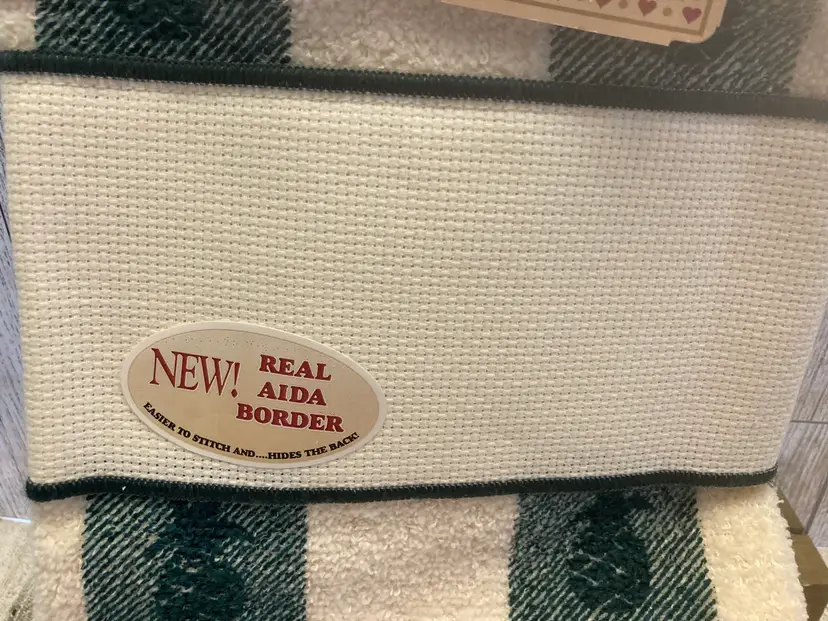 IVY: Charles Craft Cross Stitch Kitchen Towel White and Green 100% Cotton