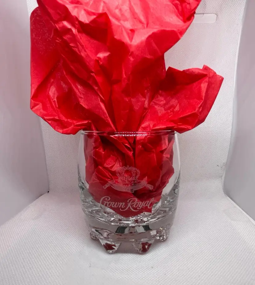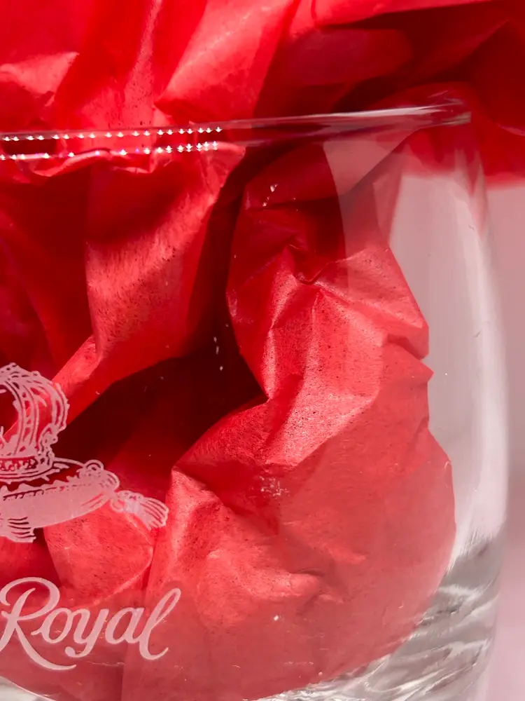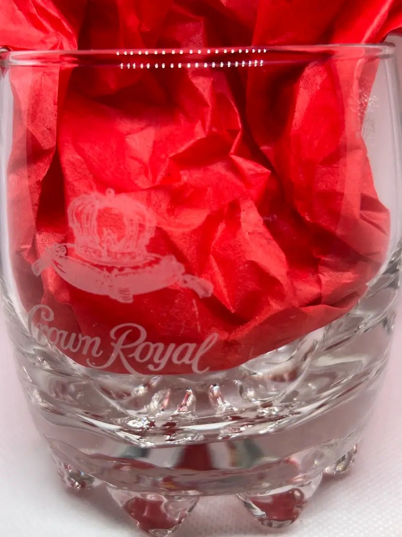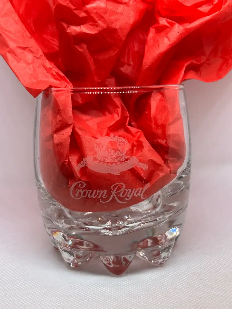 These glasses are made of high-quality glass and feature an etched Crown on pillow design along with a heavy base that provides a comfortable grip. The glasses are made in Italy and are perfect for those who appreciate the finer things in life. Add a touch of sophistication to your bar with these Crown Royal rocks glasses.