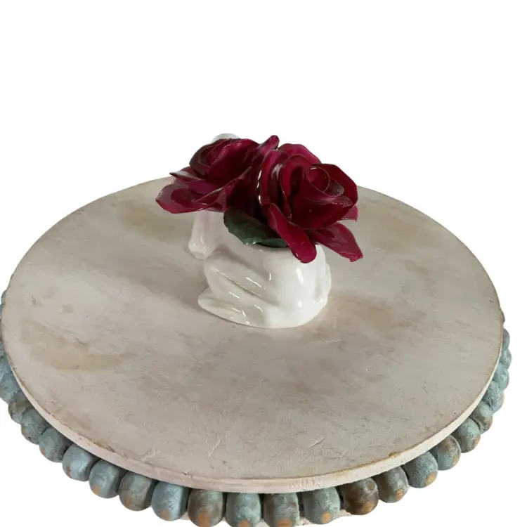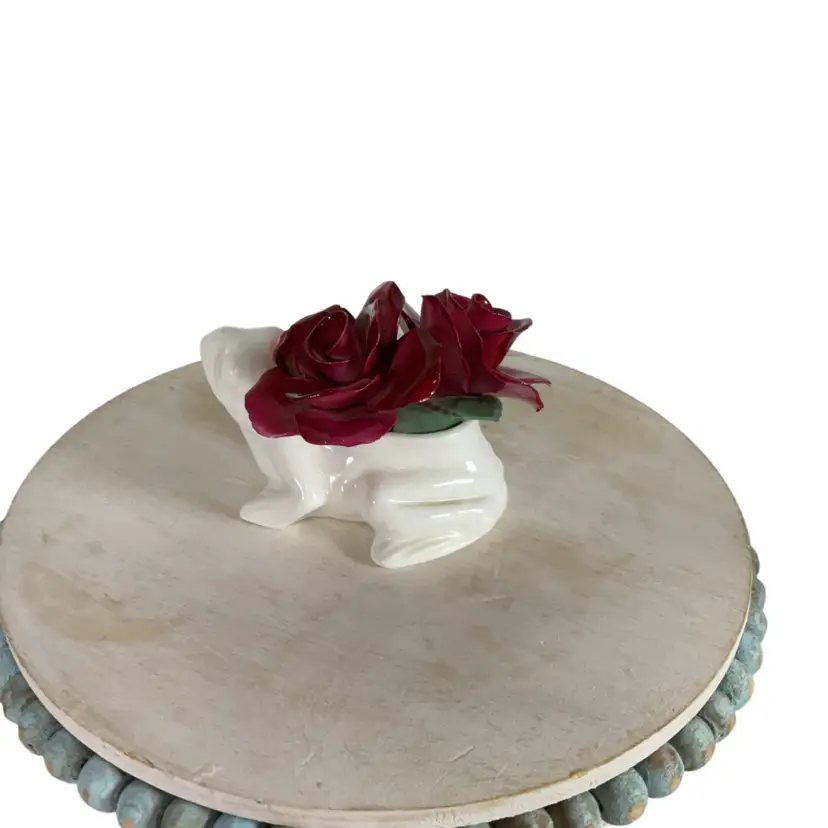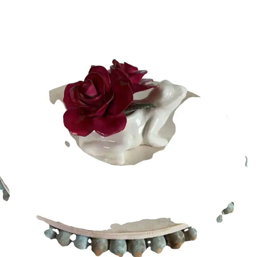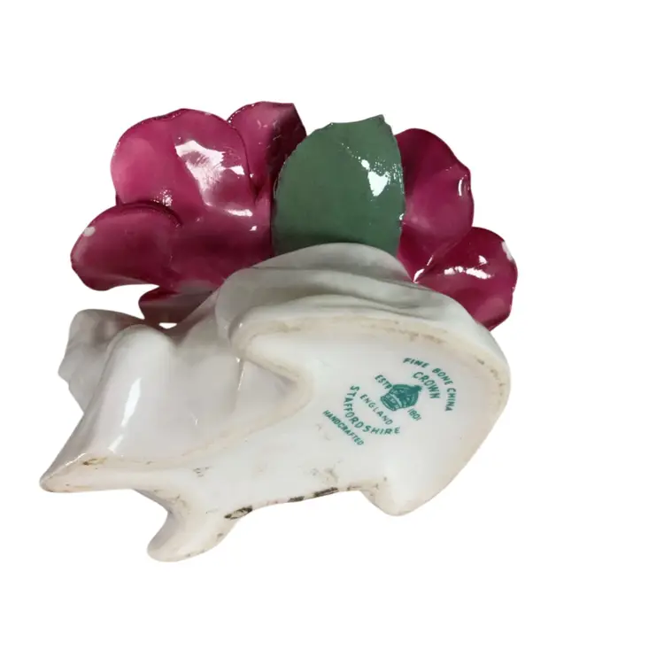 One tiny chip on a rose and leaf has been chipped. About 3.5” x 2.5”H