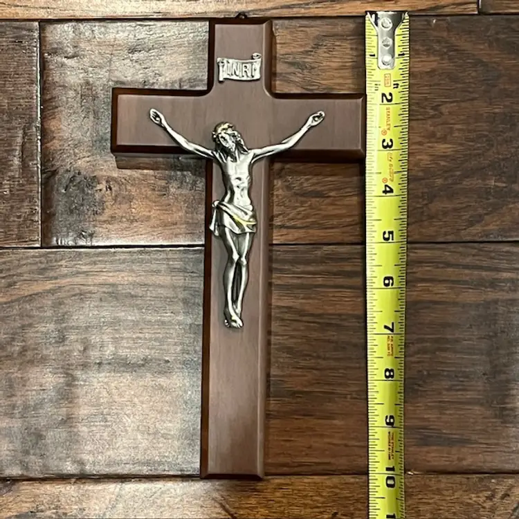 Sine Cera is maker of this beautiful walnut crucifix. No damage - original sticker