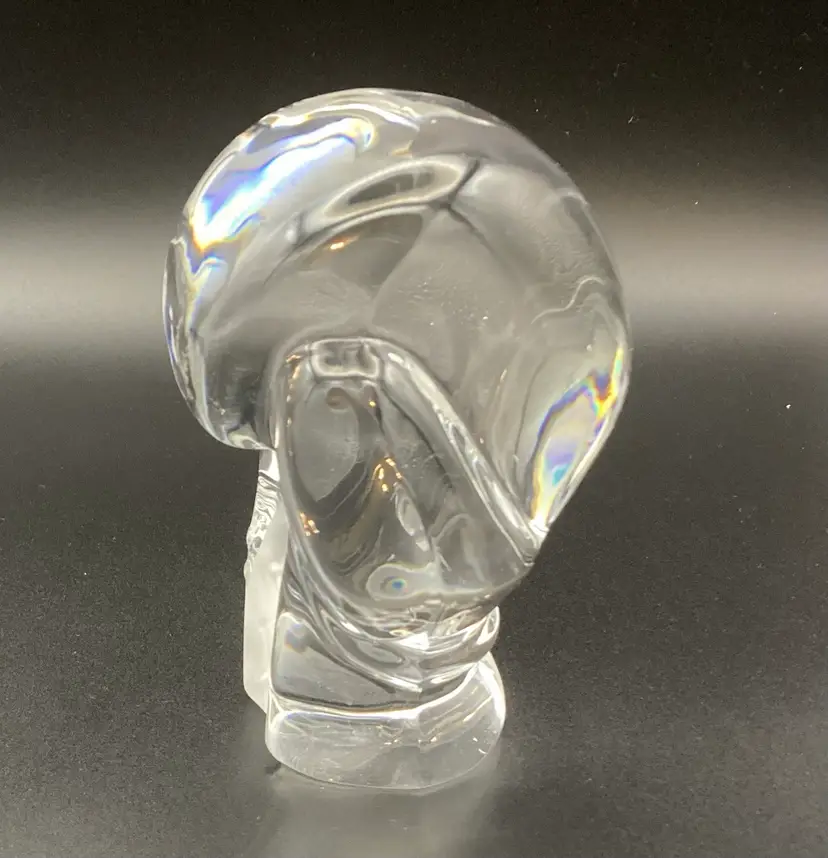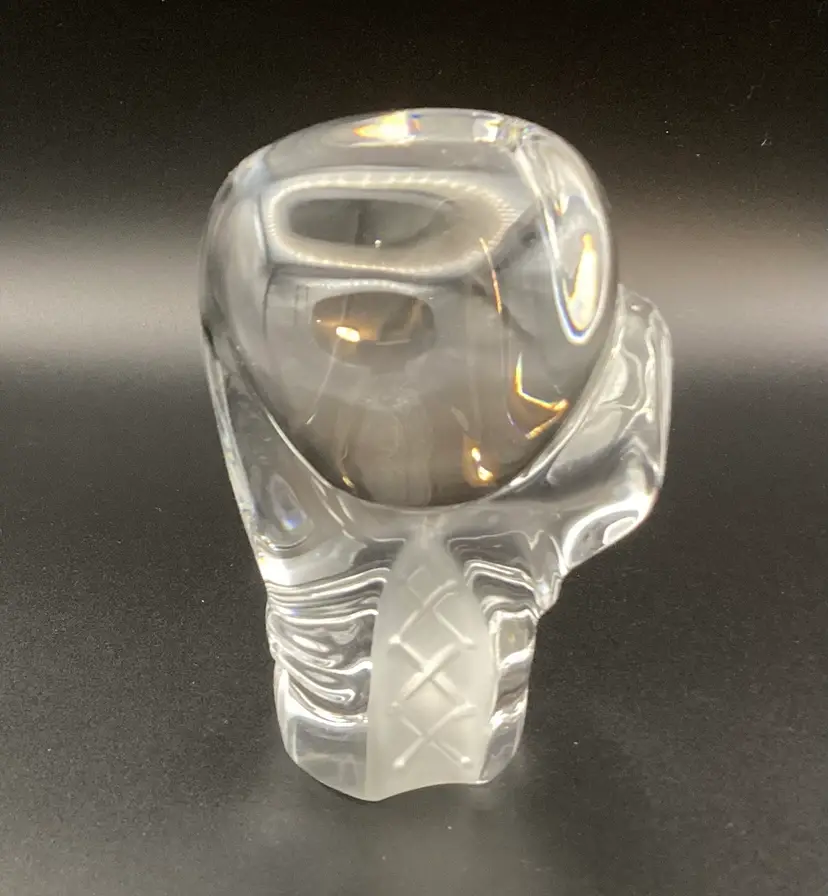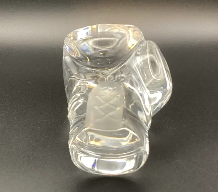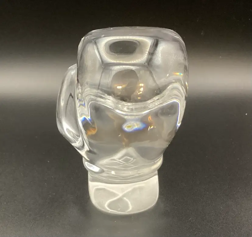 This crystal boxing glove paperweight is unsigned but appears to be a quality piece of art glass. It is in excellent condition with no chips or cracks. It measures 1.25” x 3.75”. Definitely a unique addition to a paperweight collection.