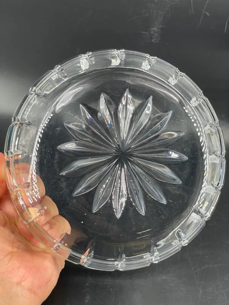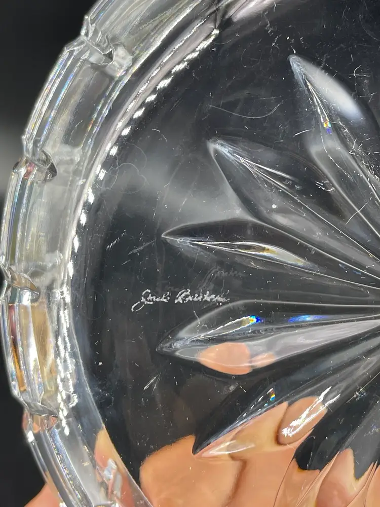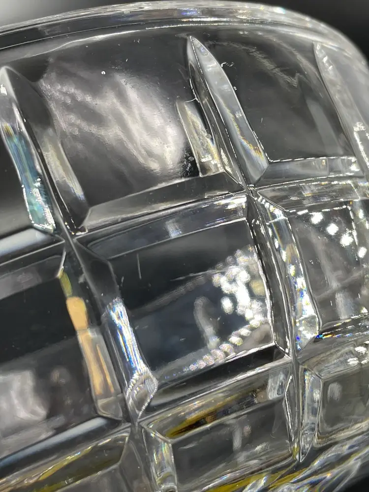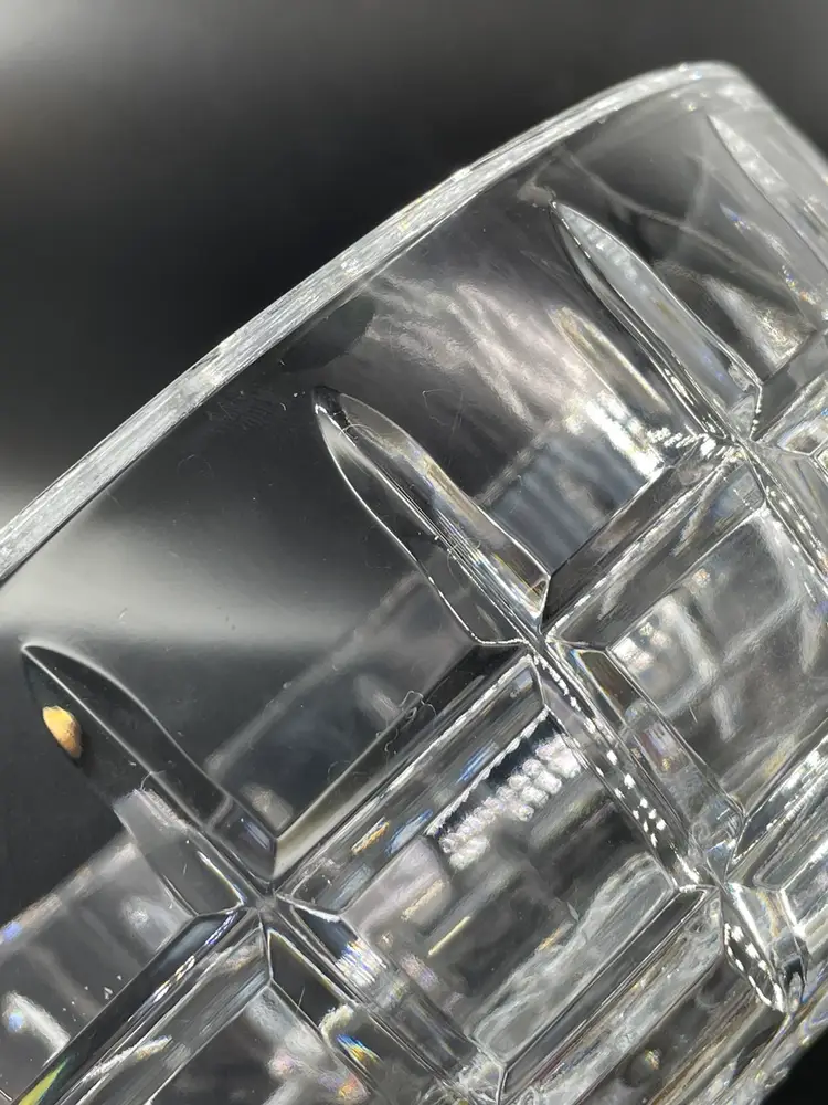 Minor surface scratches. No chips or cracks Measures 3.25” tall and 7.75” diameter crystal bowl