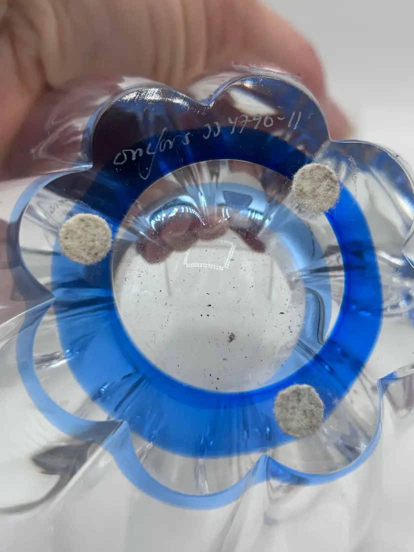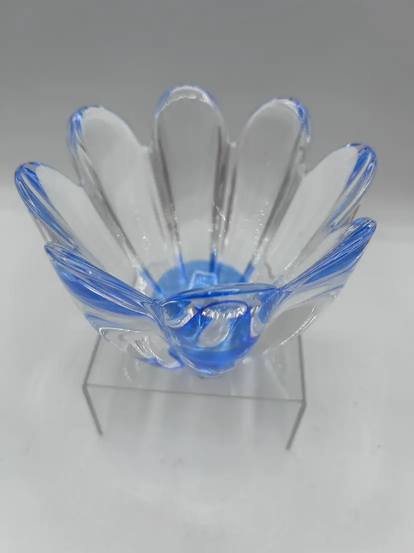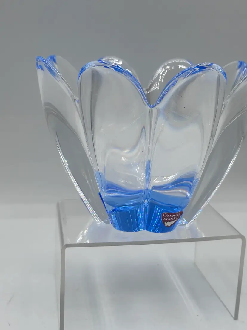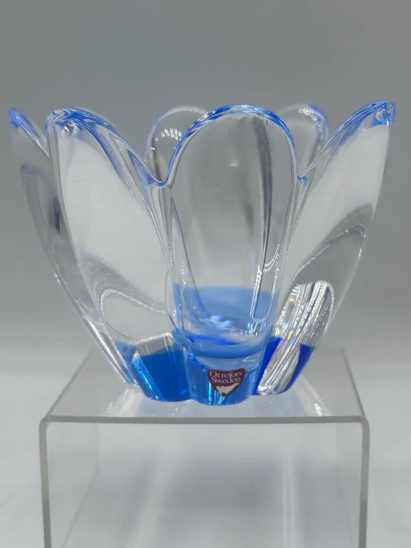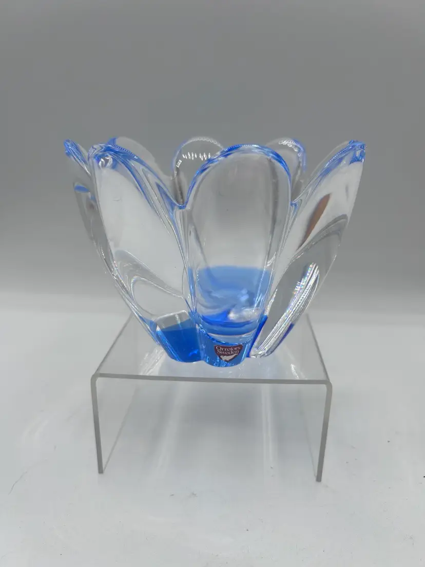 Crystal Bowl Signed Orrefors Sweden Crystal Petal Mayflower Blue Art Glass