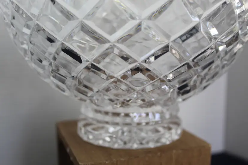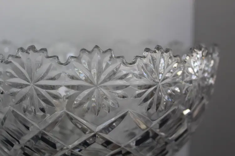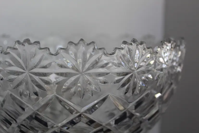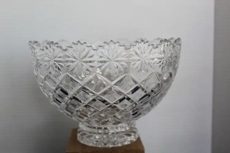 The Crystal Clear Vintage Brussels 8” X 5 1/2” 24% Lead Crystal Bowl is a timeless piece that exudes elegance and sophistication. Made in Poland in 2008, this round bowl features a beautiful Brussells pattern etched on its clear crystal surface. Perfect for all occasions, this vintage bowl is a stunning addition to any home decor, adding a touch of luxury with its intricate design and high-quality craftsmanship. Hand wash only to preserve its stunning beauty for years to come.