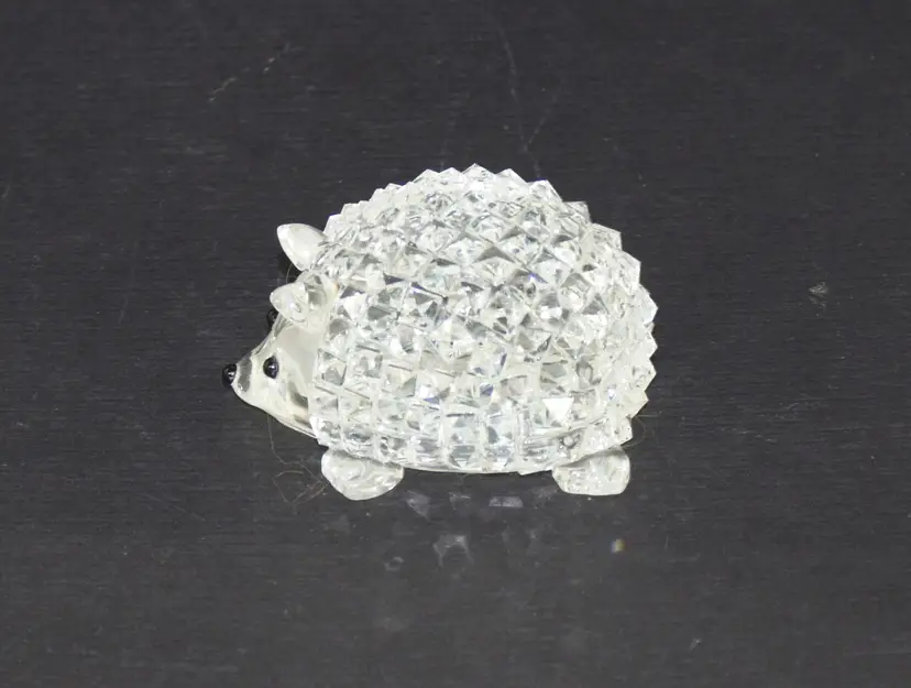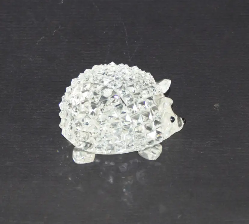 Crystal Miniature Hedgehog Figurine 1.25" x 2.25". In good condition. 1.75" wide x 2.25" long x 1.25" tall
