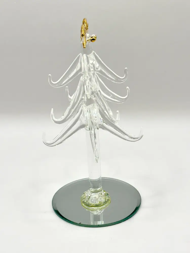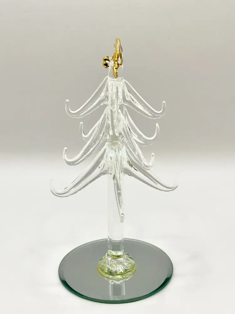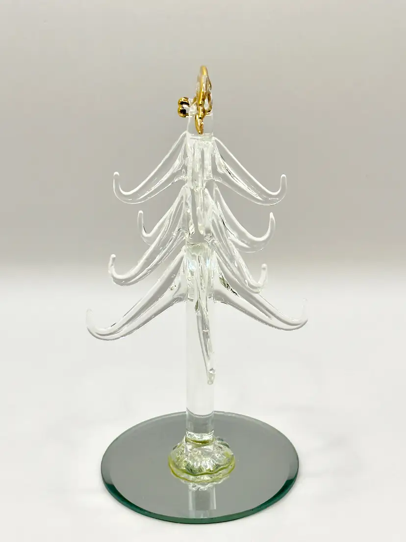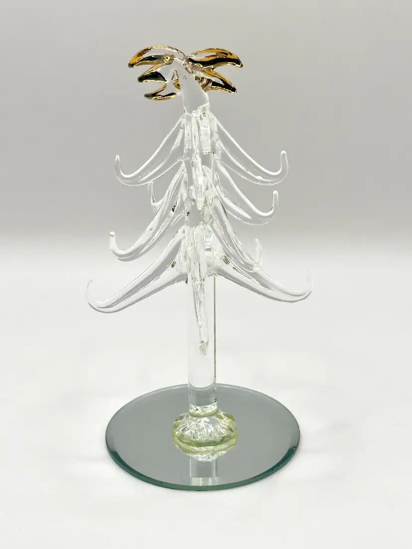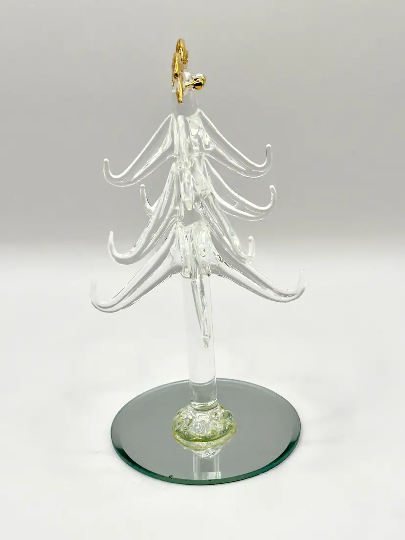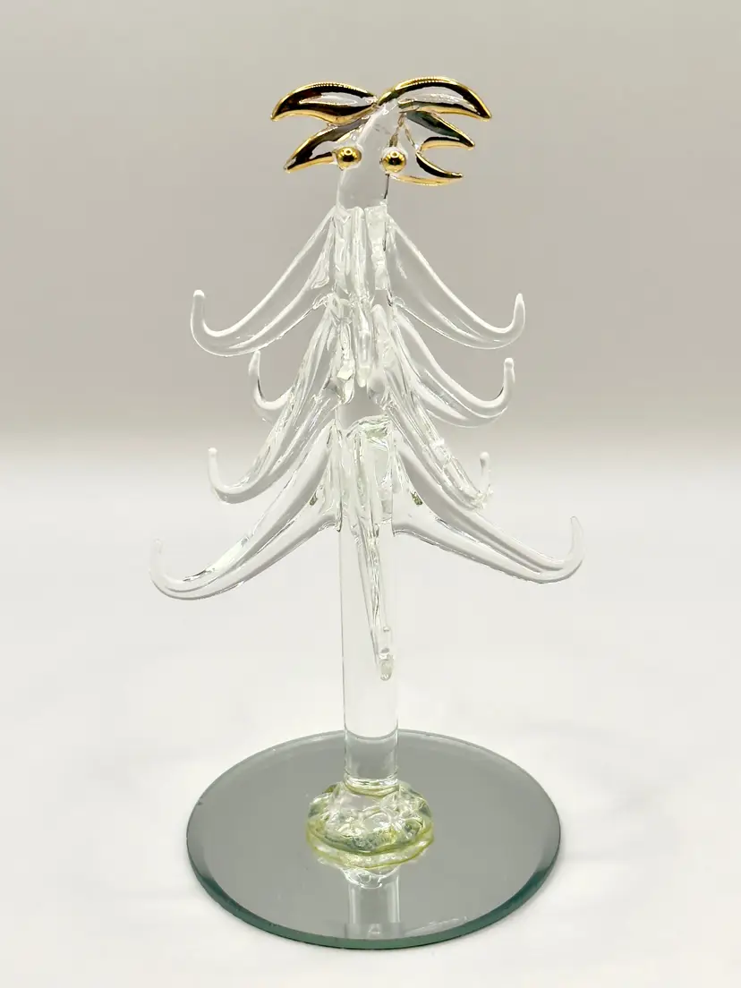 Bring a touch of holiday magic to your home with this exquisite handcrafted crystal Christmas tree figurine. Featuring delicate gold accents, this piece is perfect for adding a festive sparkle to your decor. Ideal for collectors or as a unique holiday gift. Excellent condition with no chips or cracks. Measures 6 inches. Weighs 4oz.