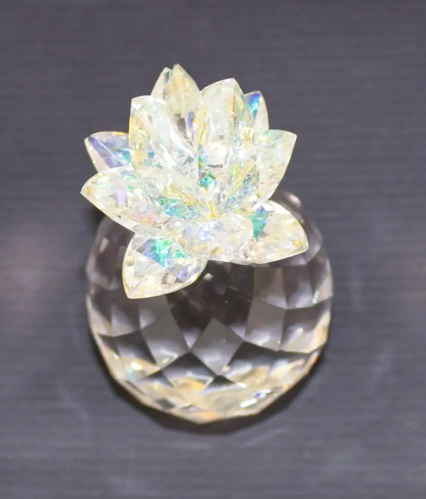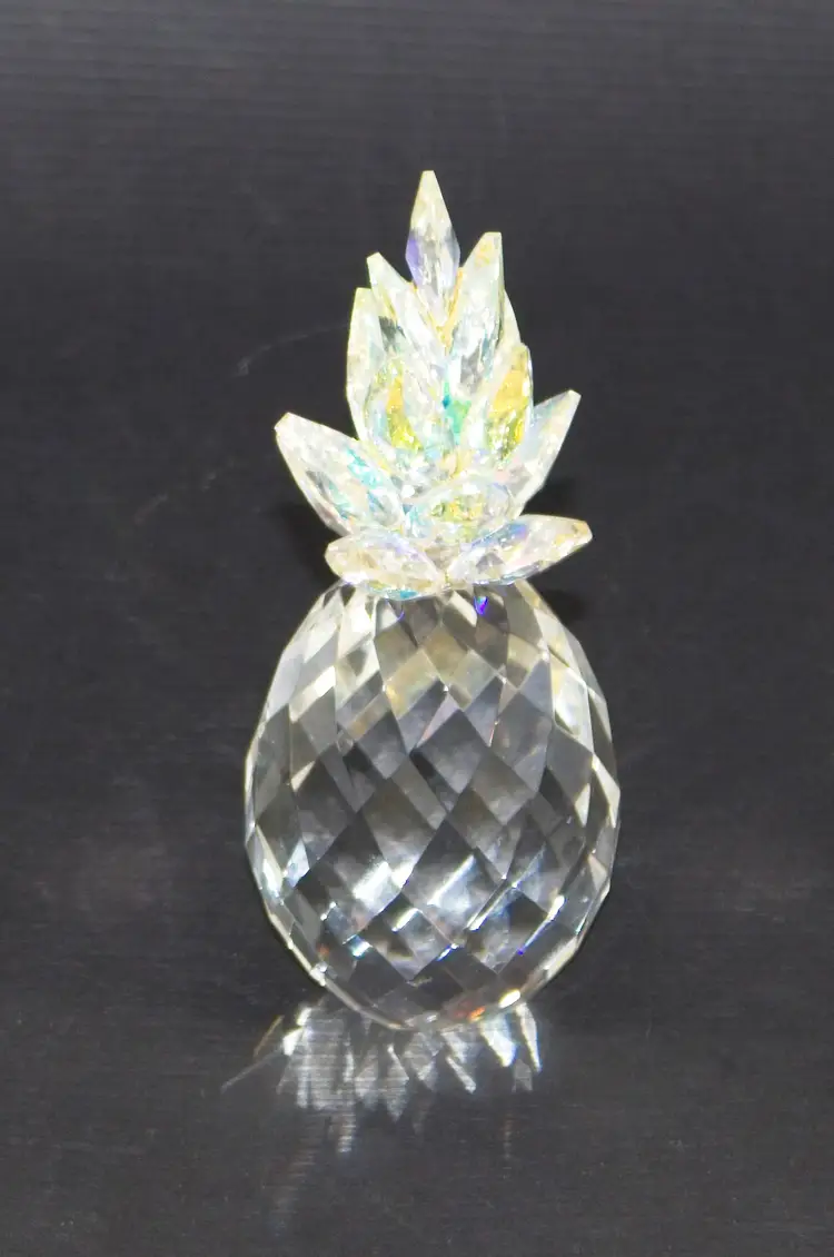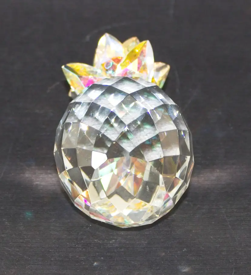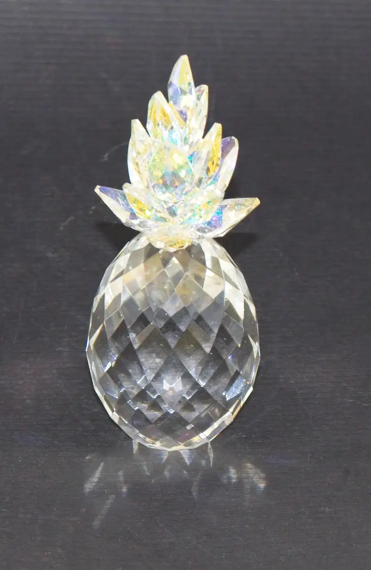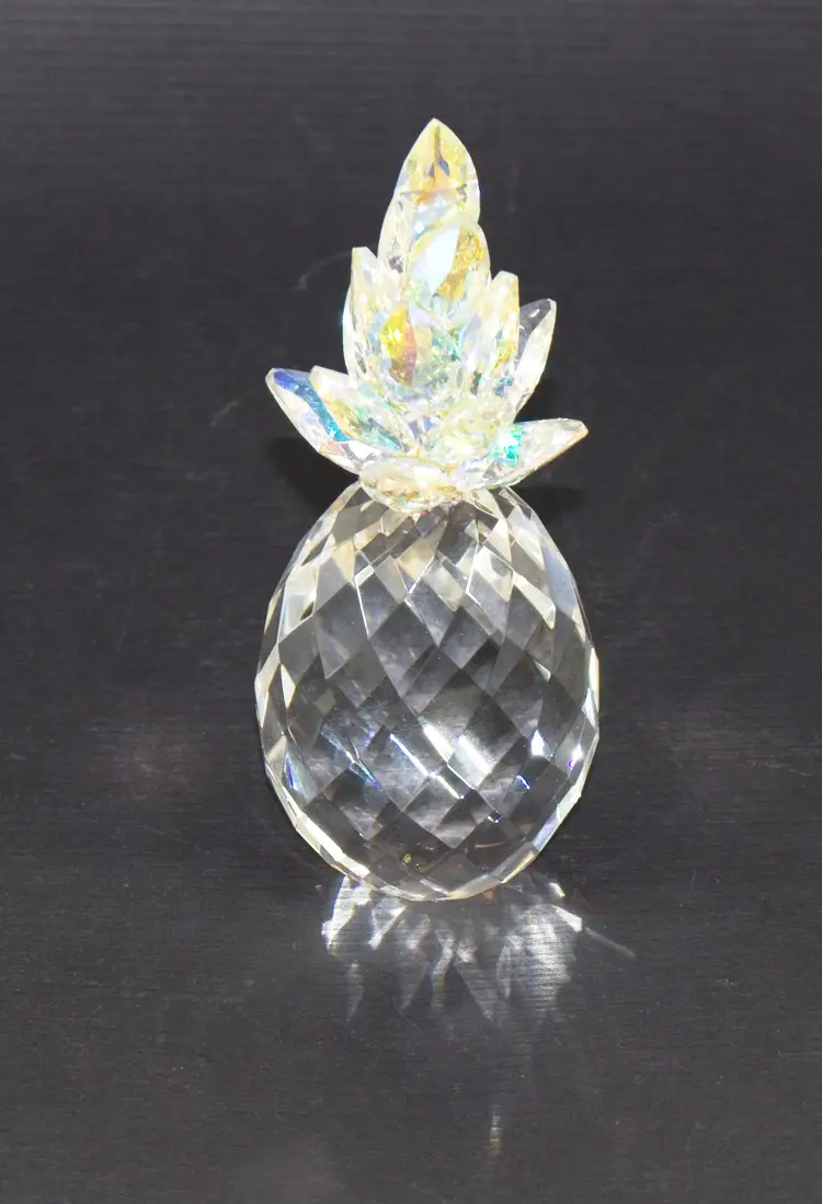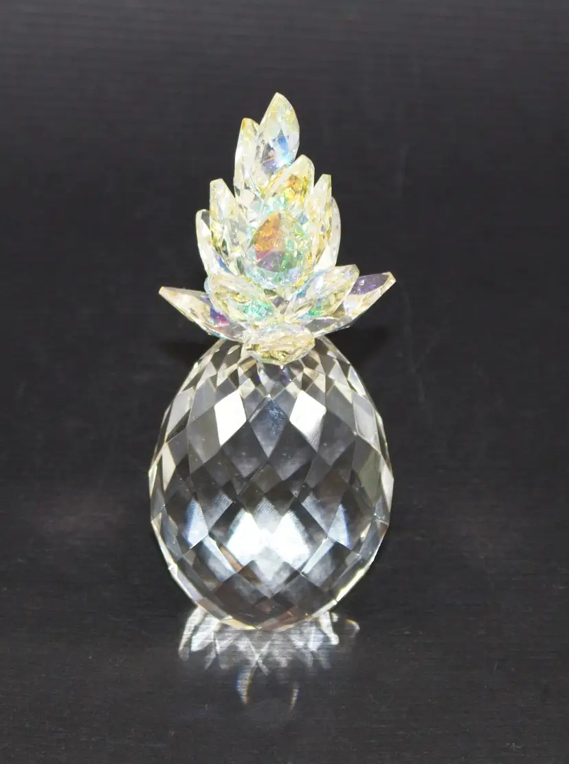 Crystal Pineapple Figurine with Iridescent Leaves 4.5" Tall. In good condition. 1.75" wide x 4.5" tall