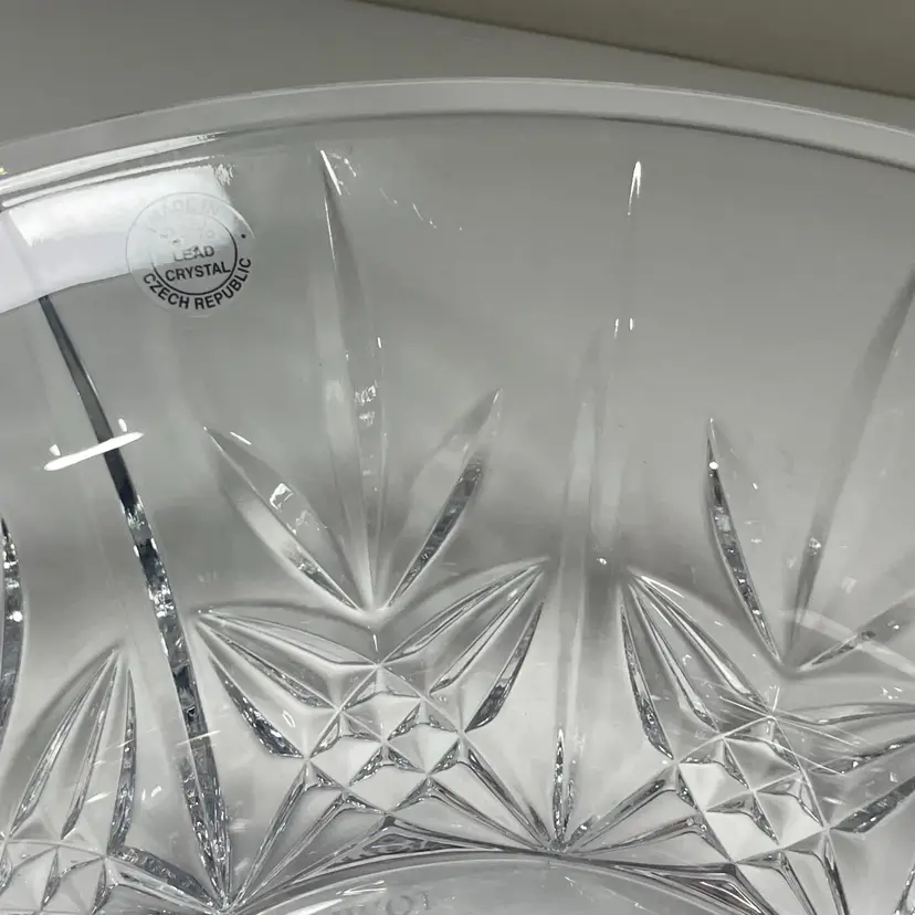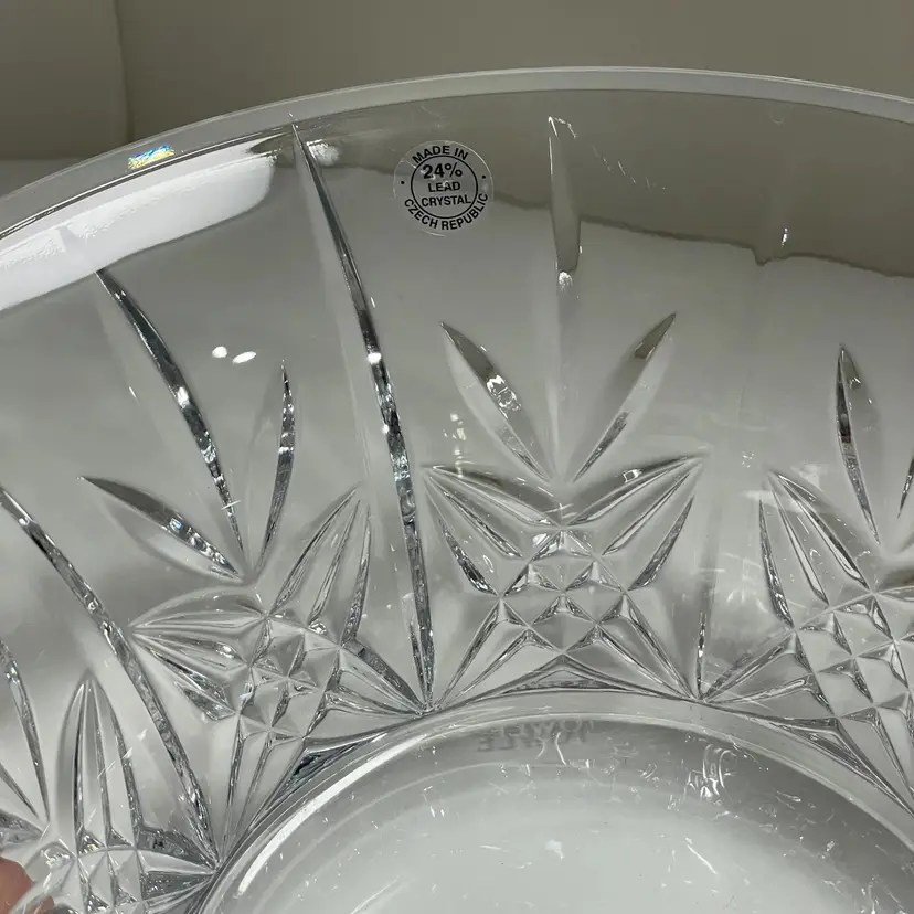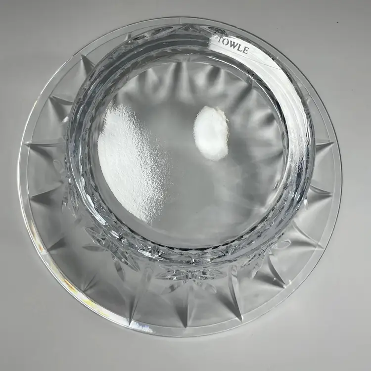 This is a beautiful Vintage Towle Crystal bowl! Used condition. It is perfect for a centerpiece or serving. No chips or cracks, but there are small scratches consistent with age and use of the product (see close up photos).