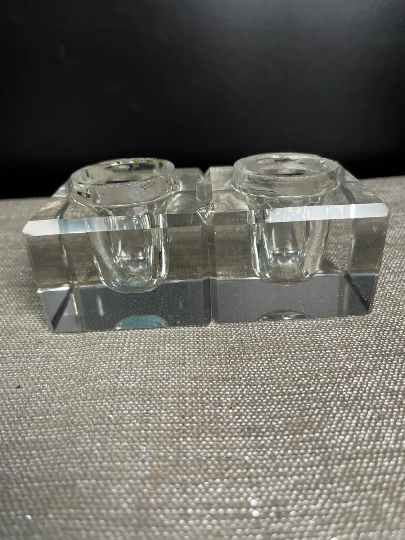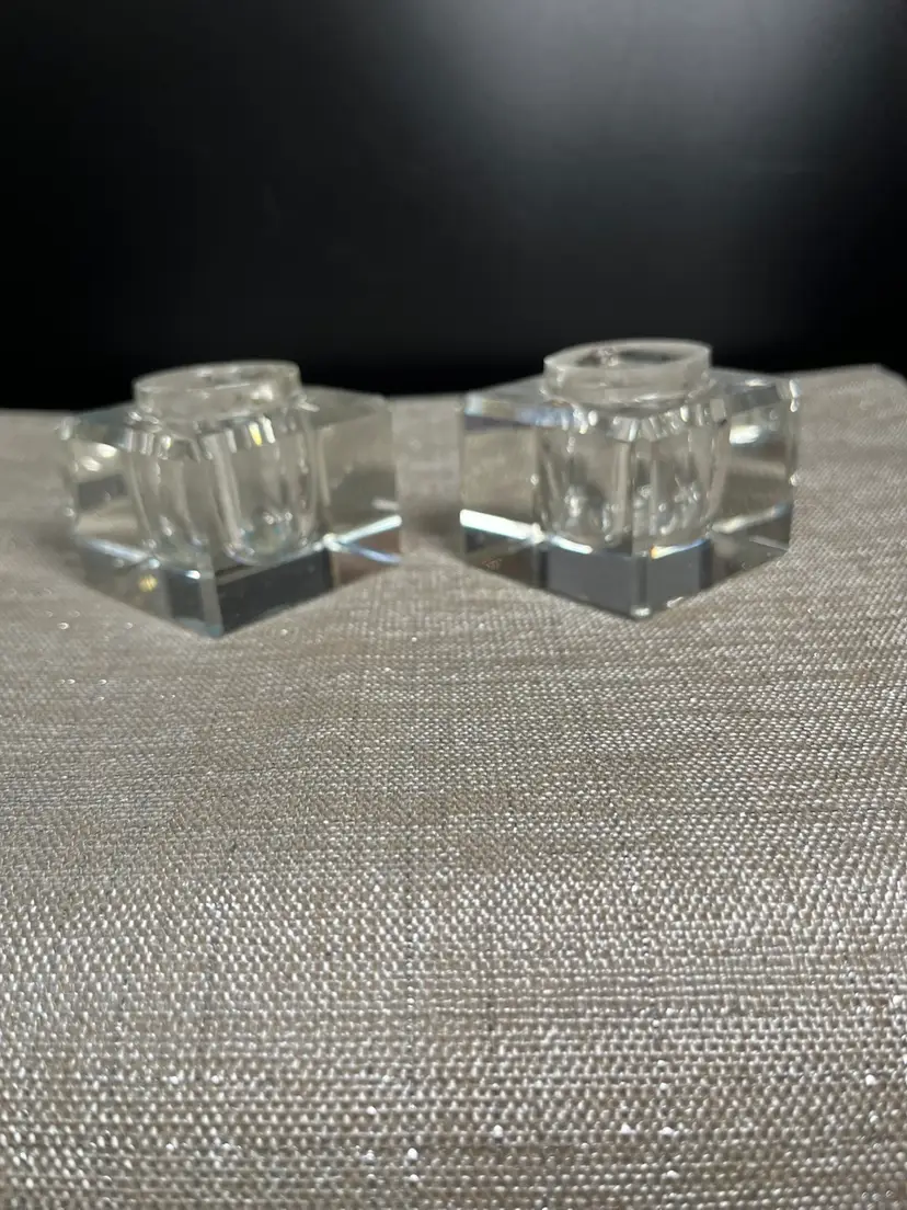 These are gorgeous. They do have a raised area around the candle holder opening and are perfect to display your beautiful glass. Or...your candles. There are no chips cracks or bruises. I would consider selling separately if you ask. Each measure approx 2.25"H, 2 1/8"x2 1/8", 1.lb 2 oz