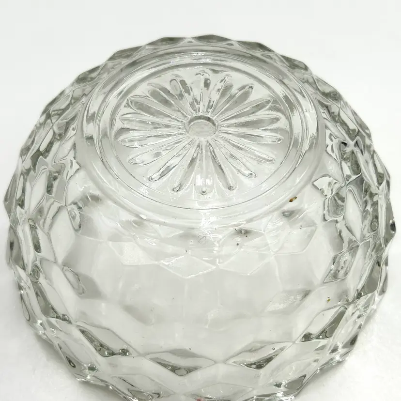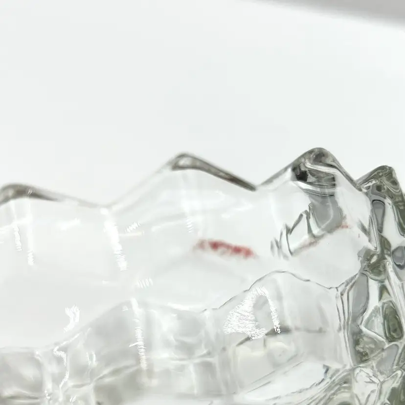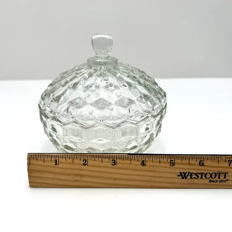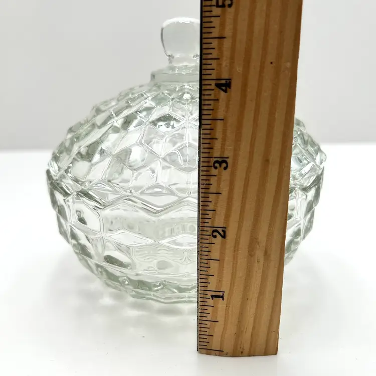 As shown 4.5 inches tall and 4.75 inches wide No chips or cracks but small red mark on glass