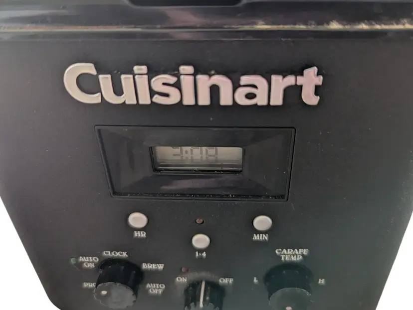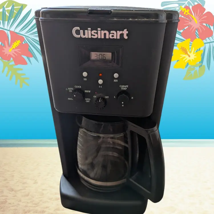 The Cuisinart Black 12 Cup Programmable Coffee Maker Model #CBC-00BWRC is a sleek filter coffee machine that offers a quick brewing time of just 5 minutes. With a power source of 120V and 1025W, this coffee maker is reliable and efficient. The digital control panel allows for easy programming, while the matte black finish adds a touch of elegance to any kitchen. Made of durable plastic, this coffee maker is a practical and stylish addition to any home for those who enjoy a strong cup of coffee.