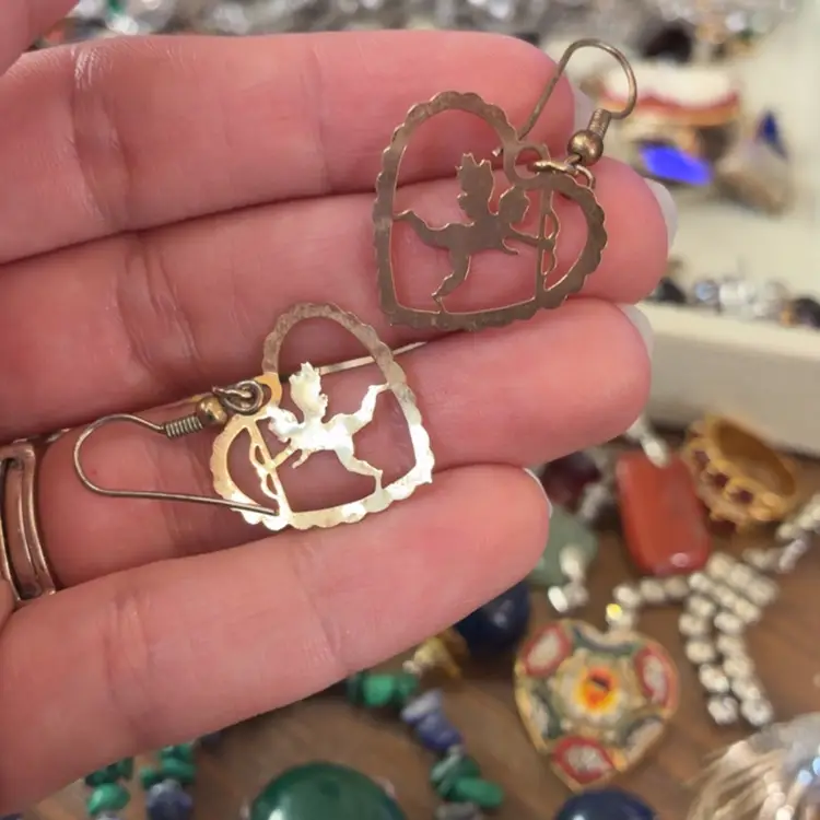 Cupid In Hearts Gold Tone Earrings