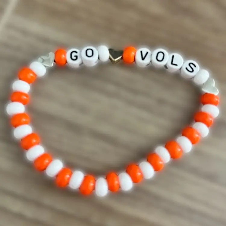 Custom designed beaded bracelets to sport your support of you favorite team or school. Also able to customize bracelets for any occasion you wish to celebrate and multiple customs can be ordered at a time.
