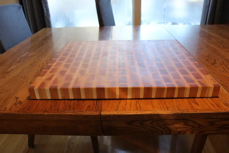 End grain cutting boards are said to be more gentle on the edge of knifes used on them, helping to preserve the life of your knifes. Along with this, the end grain fibers hide knife marks, making the board last longer and maintain a "new" look much longer then edge grain cutting boards.