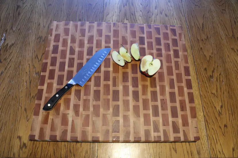 Any size of cutting board can be made, the prices listed are examples of different prices at several sizes with either Cherry bricks (dark red) or walnut bricks (nearly black) with lead times usually being 1-2 weeks, though longer for extra large cutting boards. By default all cutting boards are 1.5 inches thick, though thicker boards are an option.