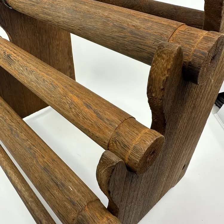 Approx 14” tall x 13” across, the bars are easily removable. Made of a wood composite, good condition