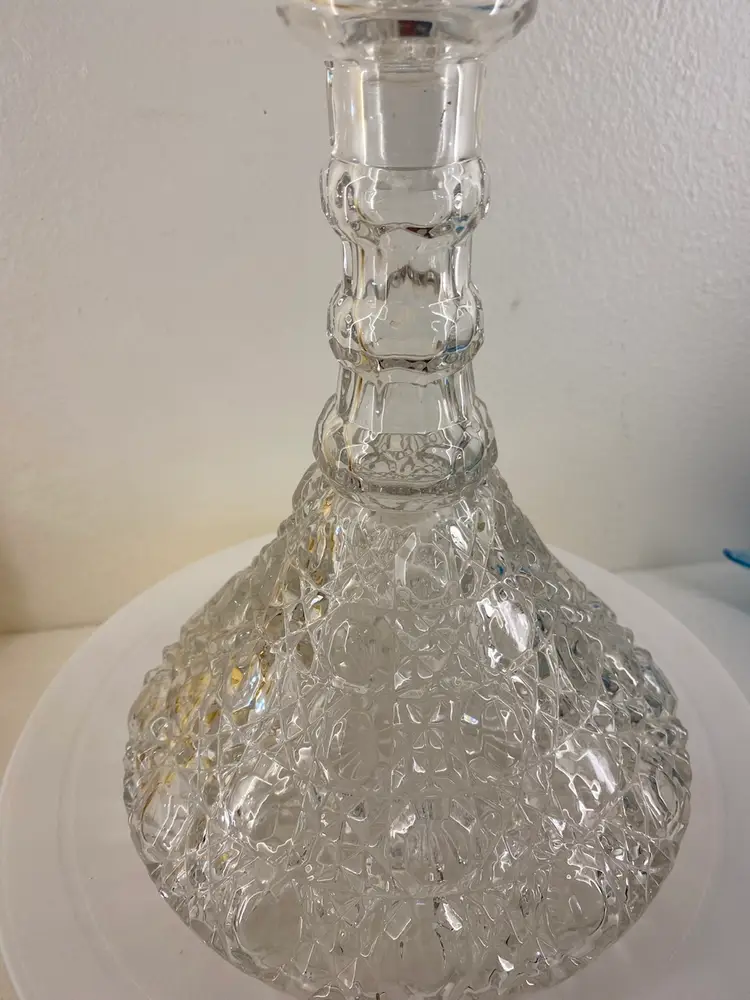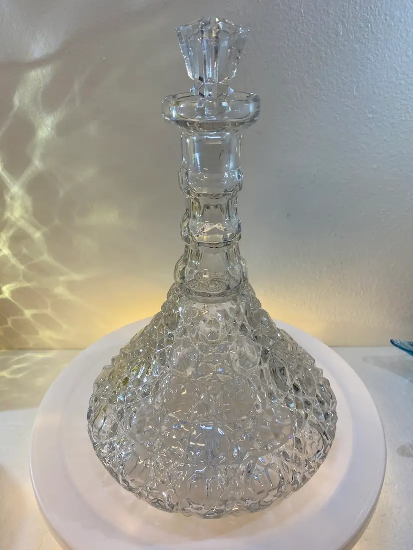 Excellent condition Ship Captains Table whiskey decanter w/stopper., Beautiful, heavy bar addition. 10.5”Tx7”W Base