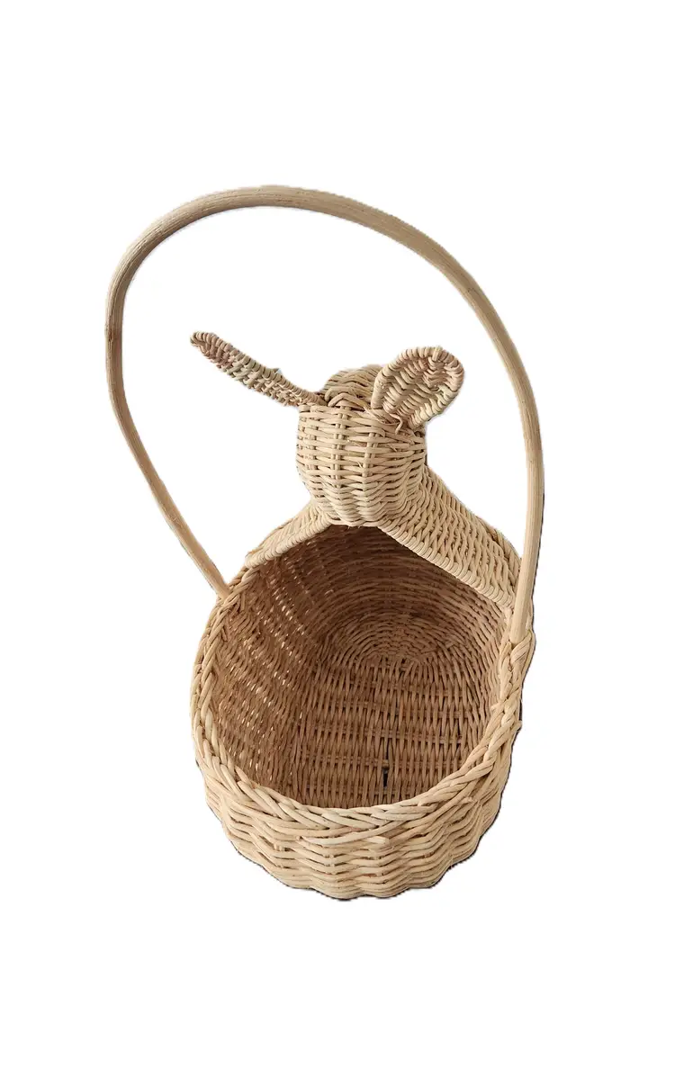 This basket stands 11 inches tall from the bottom to the top of the handle. It is approximately 9 inches long and 6 inches wide. It is in very good condition.