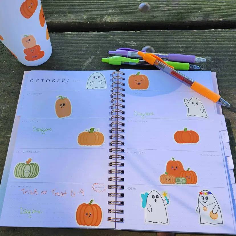These full color, matte finish vinyl stickers are durable enough to decorate your favorite water bottle, tablet, and phone or use in a planner, bullet journal, or notebook!