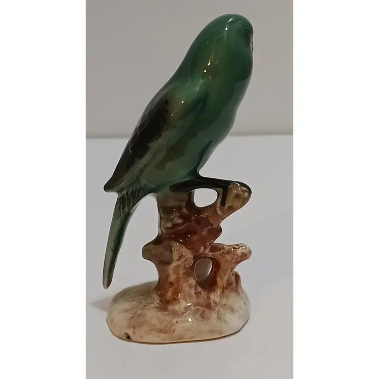 Cute Little Ceramic Parrot Figurine With Little Blossom Adornment; Lovely Shade Of Green; Japan: Excellent condition; no chips or cracks; 4" Tall x 2.5" Wide
