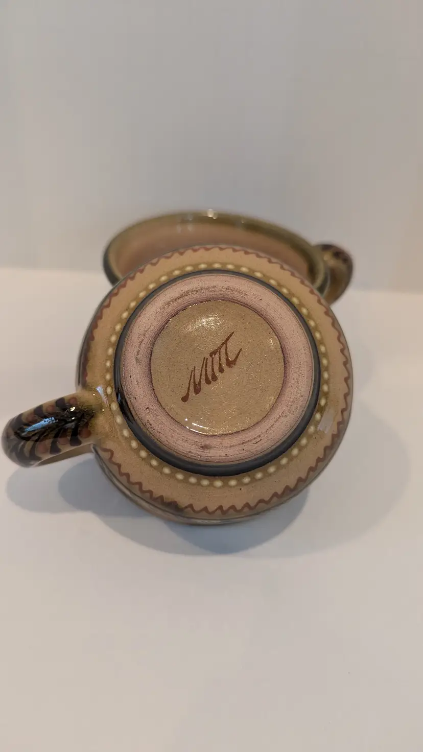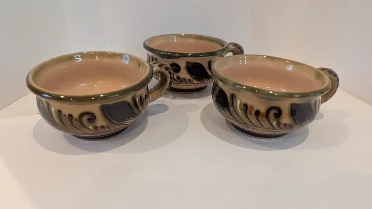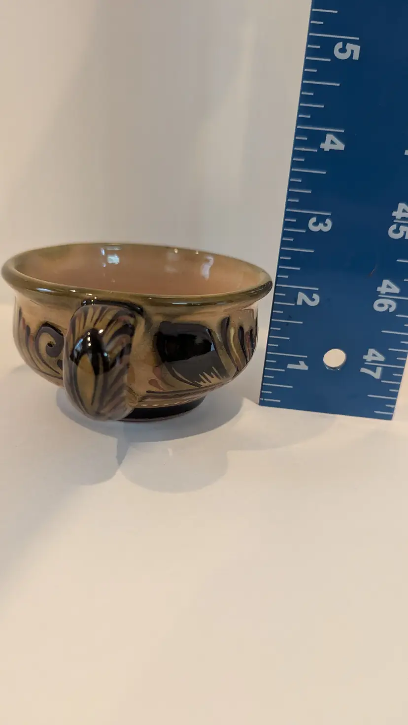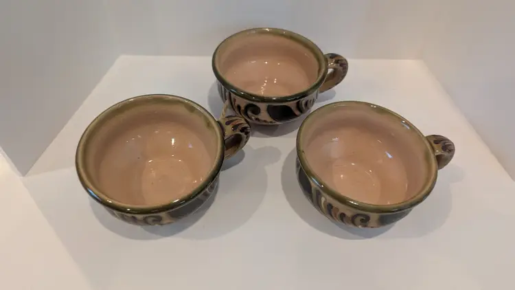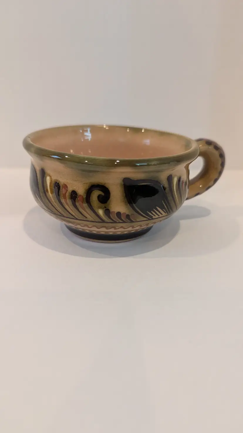 Lovely little coffee/tea Mexican pottery cups. Beautiful glaze in browns & greens. 3 cups available - will bundle if purchasing all 3 cups.
