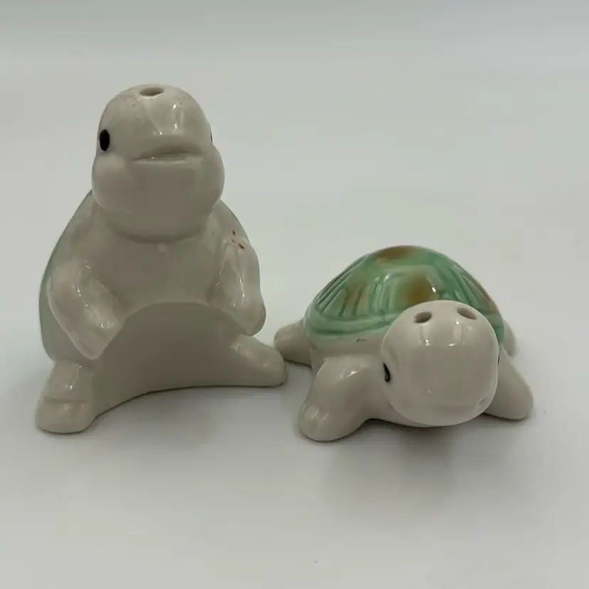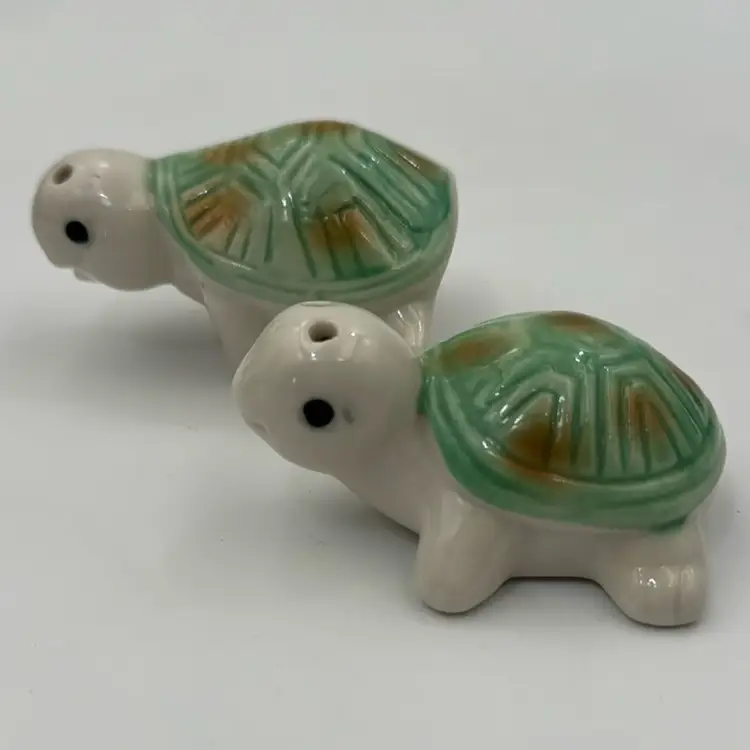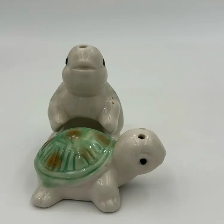 3” 2” No chips or cracks In wonderful condition has a glaze drop on the shoulder on the boy turtle