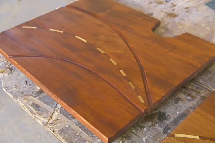Serving board on one side and flip it over for a poly cutting board. African Mahogany and Poplar inlay. Most of my work is custom, made to order. If you would like a similar piece, contact me to discuss style, material, budget, ideas and shipping options. Price below is an estimate for similar furniture.