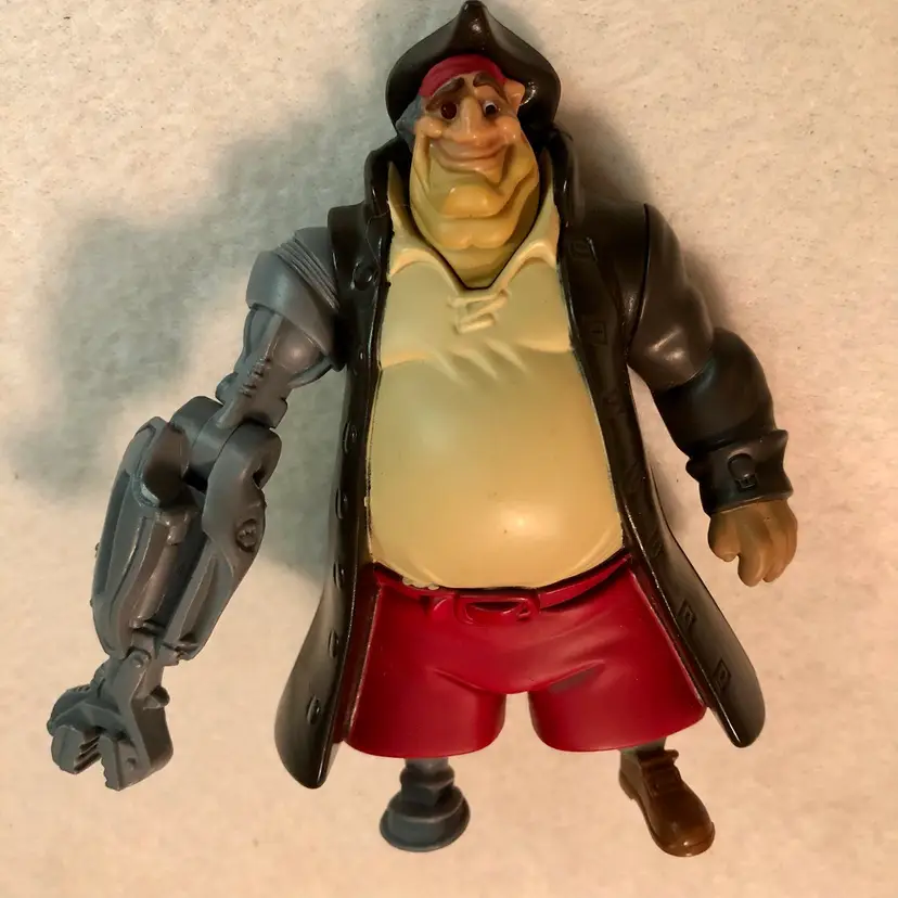 The product is a Cyborg John Silver action figure released as part of the Disney Treasure Planet promotion in McDonald's in 2002. This collectible toy features the character John Silver from the movie, making it a sought-after item for fans and collectors of Disney memorabilia. The fact that it was offered as a tie-in with McDonald's adds an extra layer of interest for those who enjoy collecting fast food premiums.