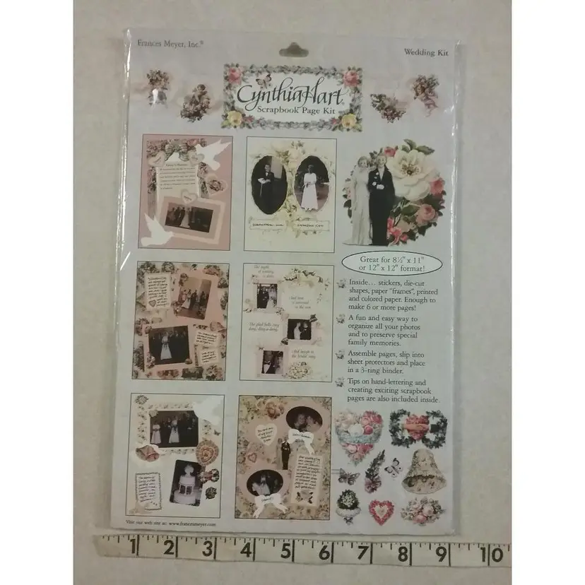 Stickers, die-cuts, frames, printed and color paper. Enough to make 6 or more pages.