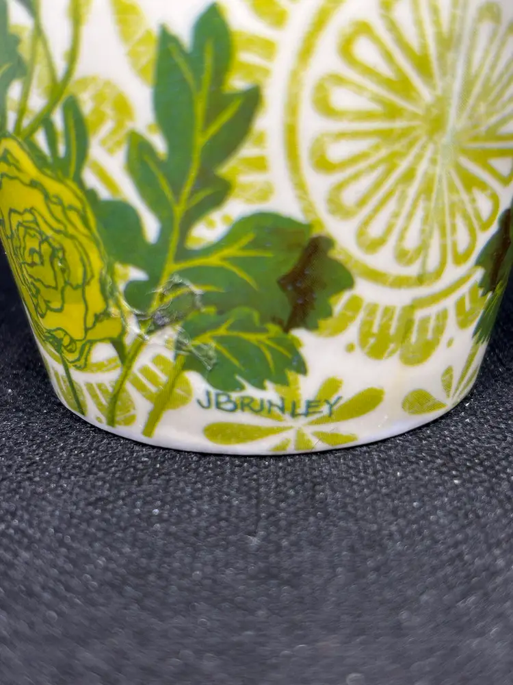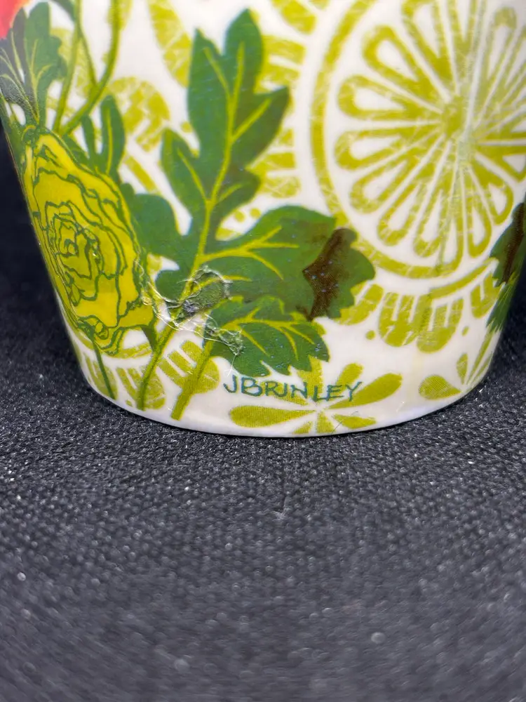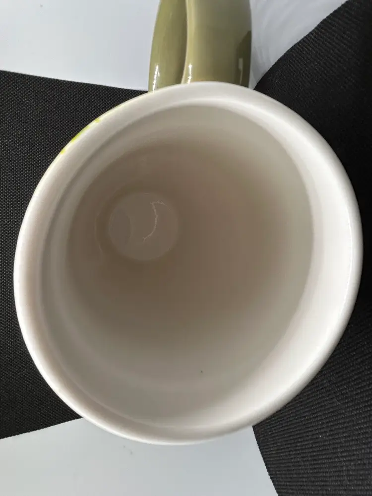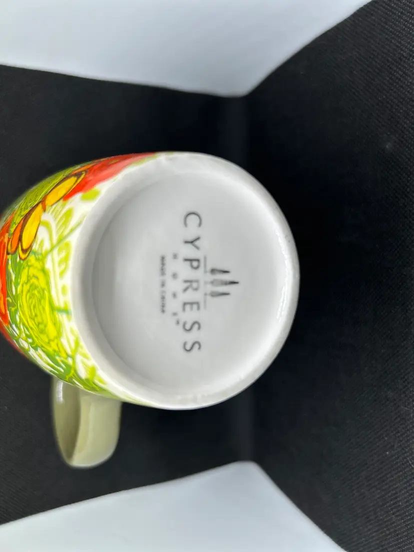 Great Cypress Home Botanica Ceramic Mug 17 oz Green And Red Coffee Cup with butterflies. 6""H x 5.25""W x 3.5""D
