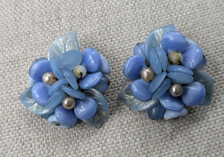 1-/2" across, unmarked. One pearl on each earring has lost its coating. Clip on.