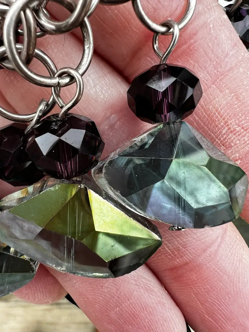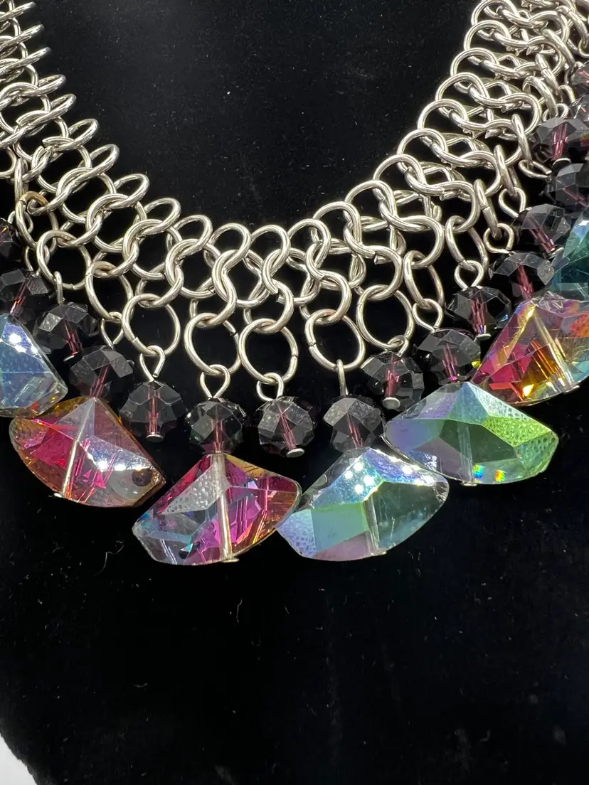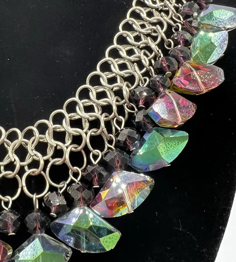 Beautiful statement necklace of Czech glass and wide silver tone chain Lobster claw closure Extender 19” - 22.5” It will be packed securely and shipped within two days of purchase