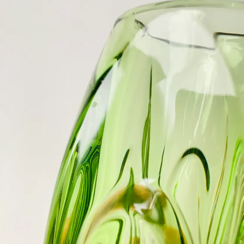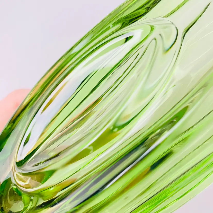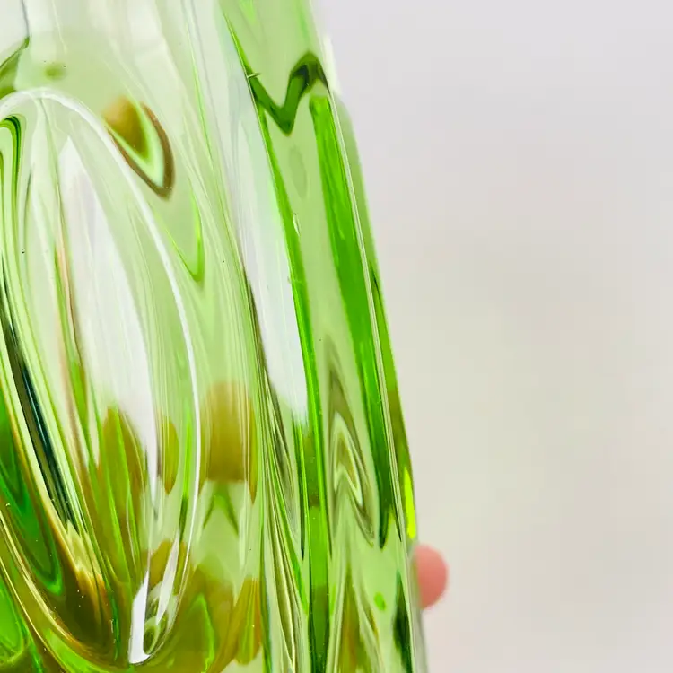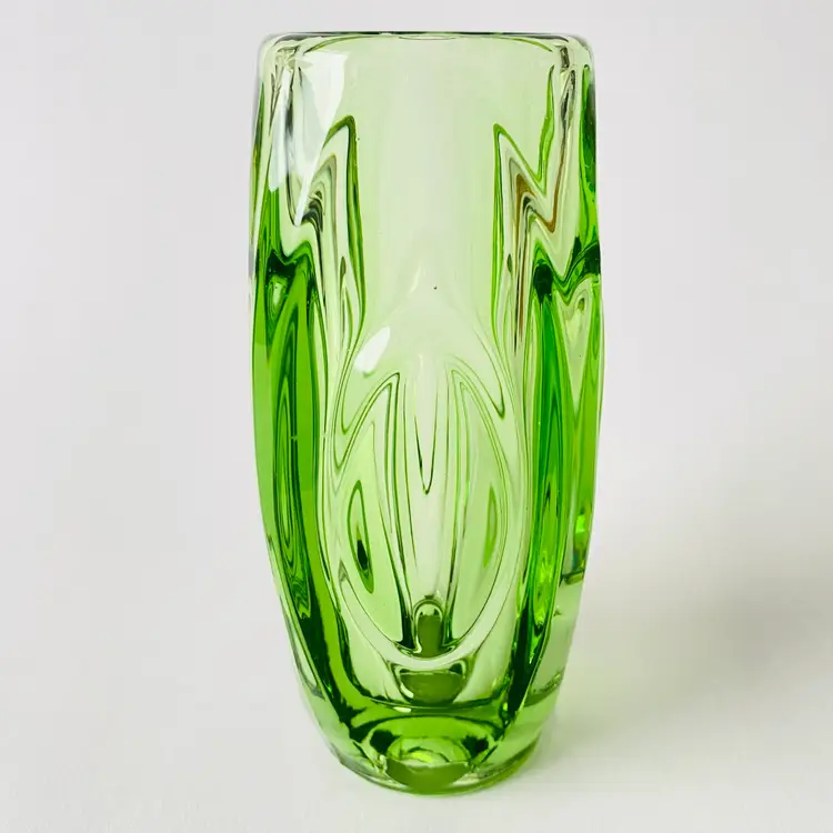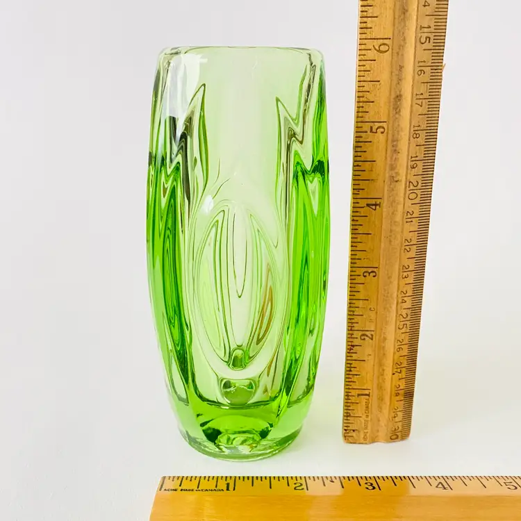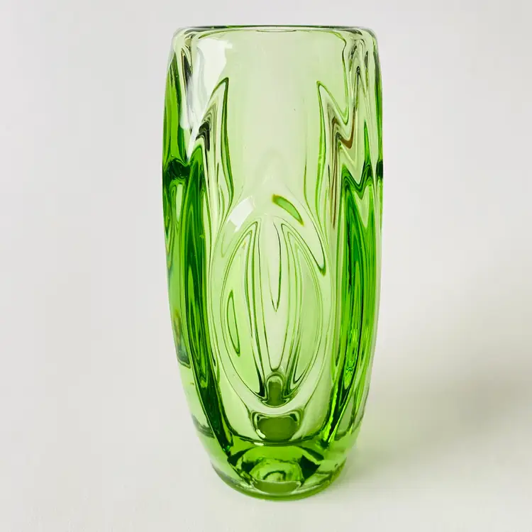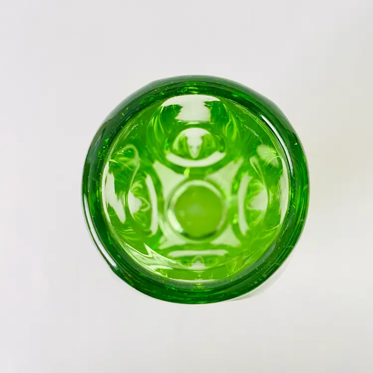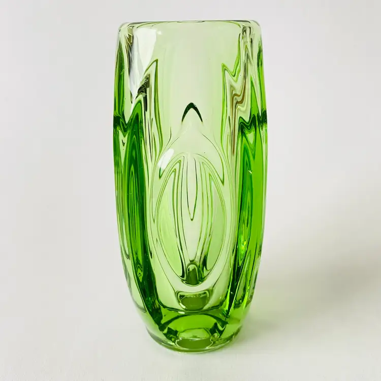 Czech Sklo Union Rosice Green Lens Bullet Vase Rudolf Schrötter 1960s #914