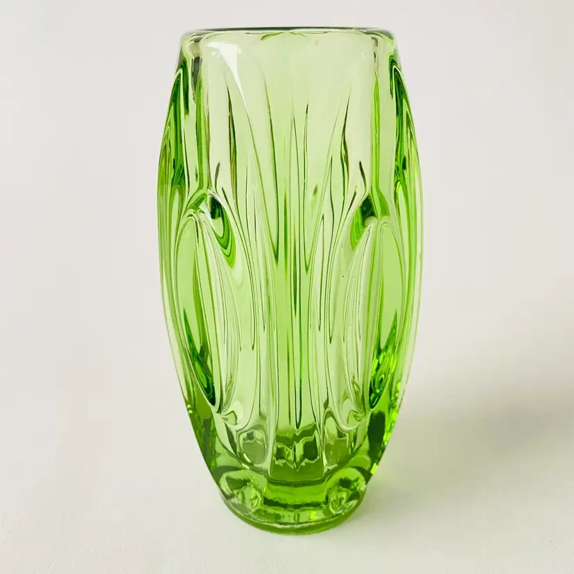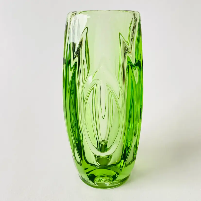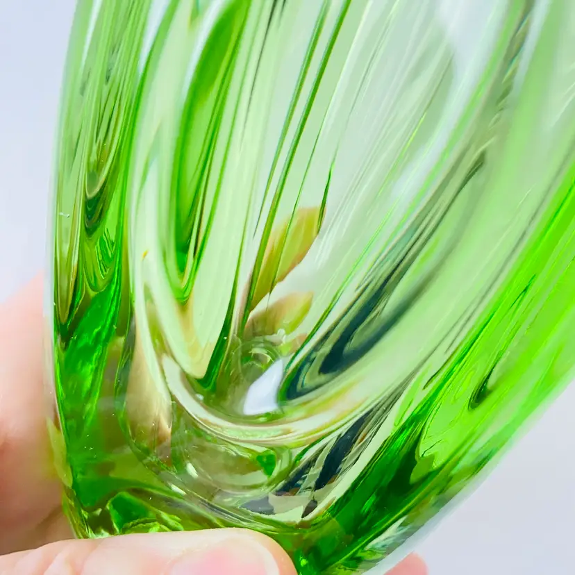 Czech Sklo Union Rosice Green Lens Bullet Vase Rudolf Schrotter 1950s/60s #914