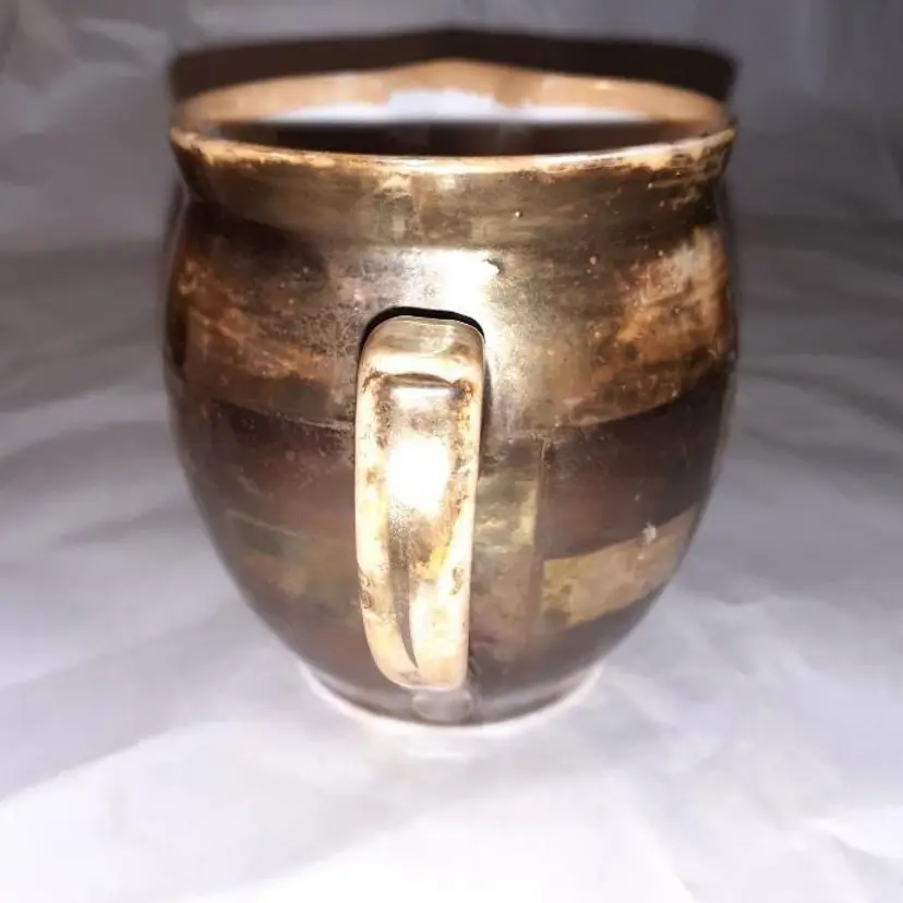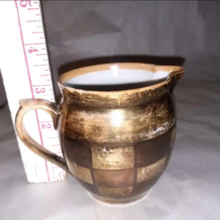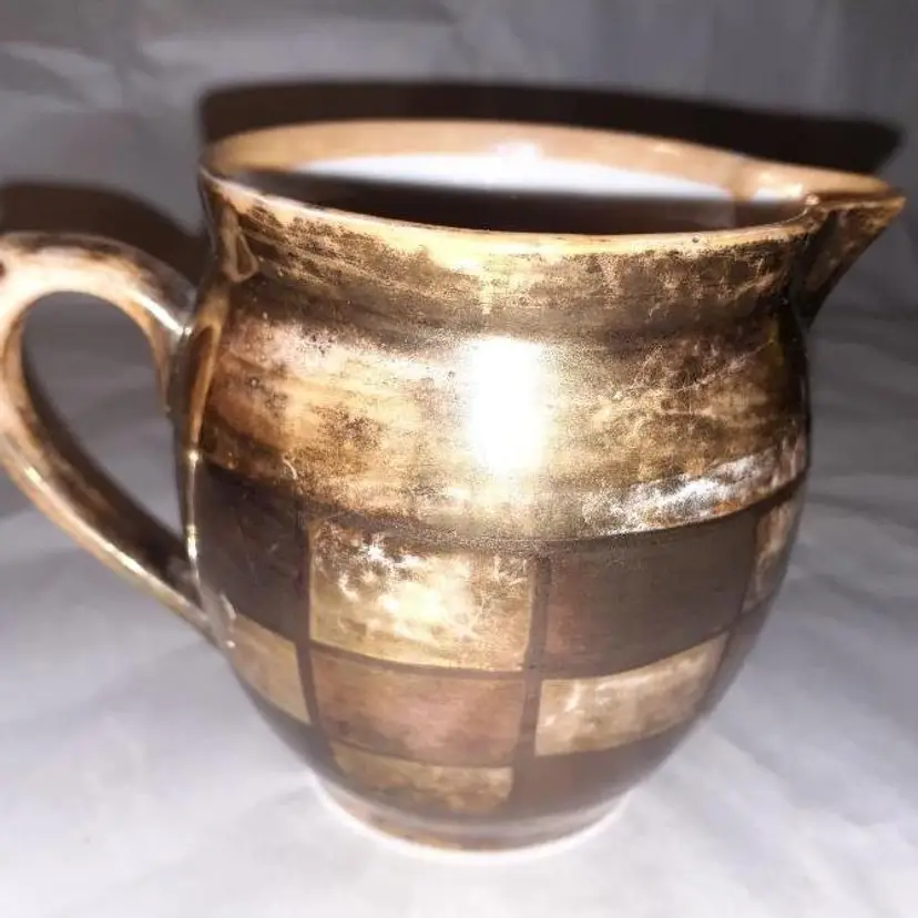 Small Czechoslovakian pottery lusterware with gilded Square design. In good vintage condition no chips cracks or crazing really an adorable piece please see all pictures as they are the best description measures a little bit over 3 in tall all items from a smoke-free home with pets experienced fragile shipper