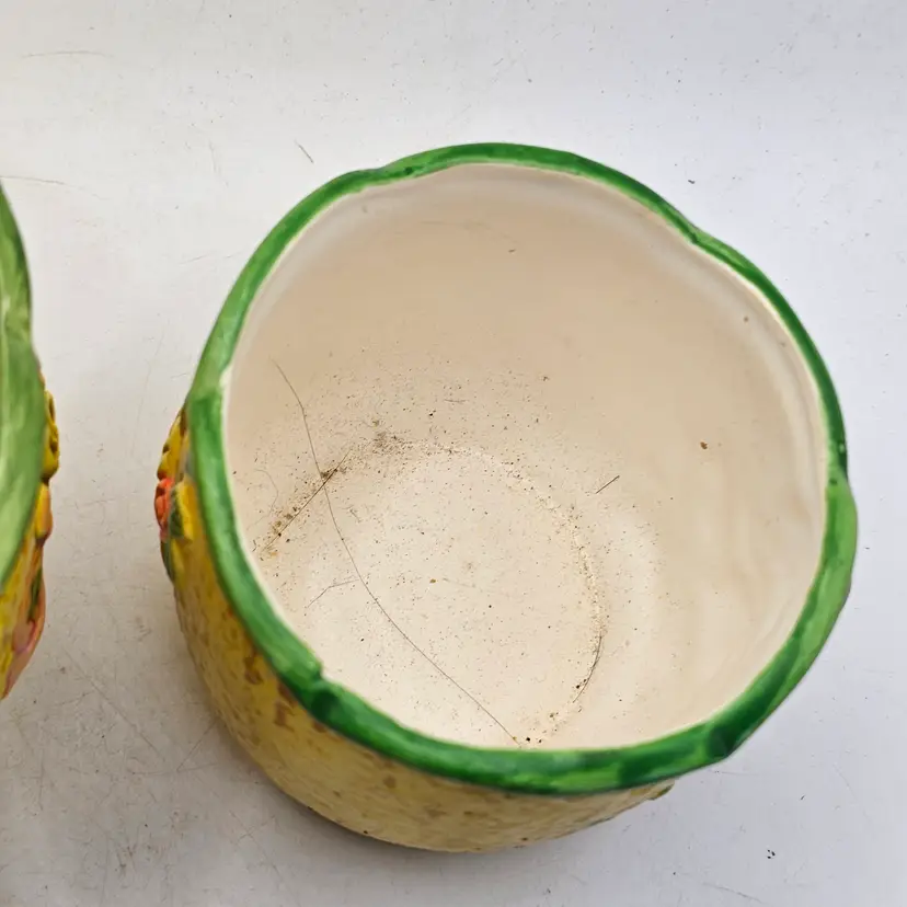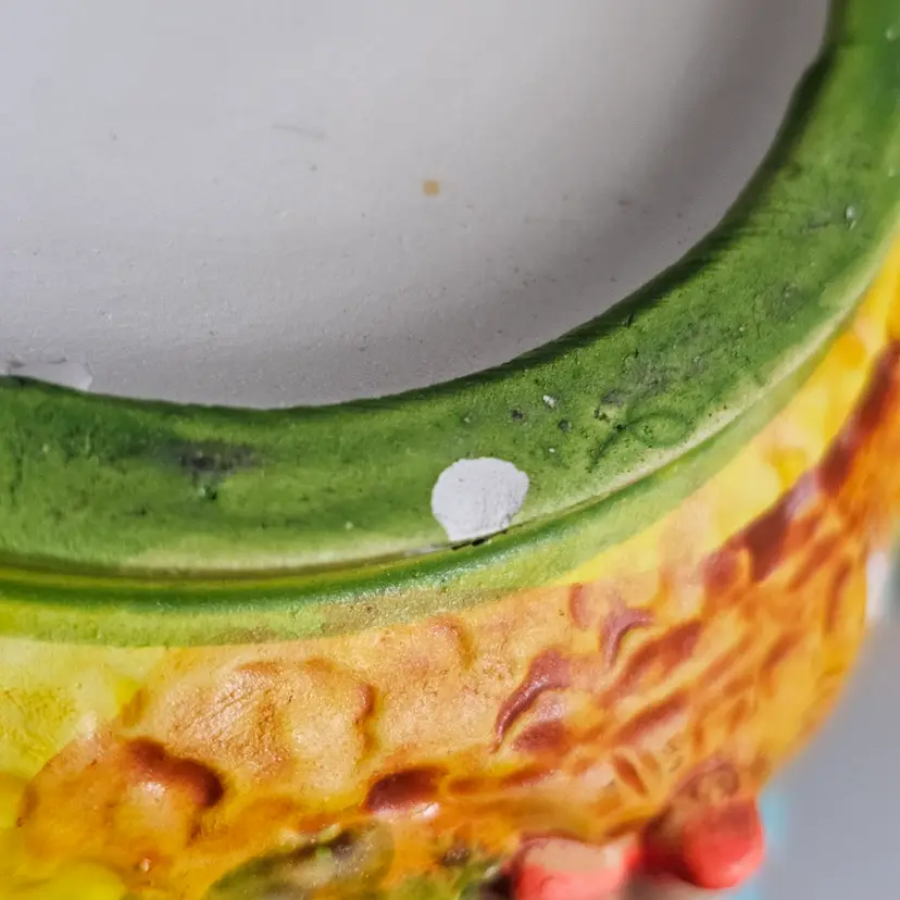 See photos for imperfections. Chip on bottom of 1