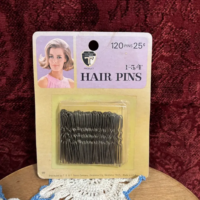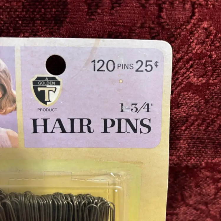 From 1960’s to 70’s era. Inclusivity for T G & Y. NOS. 120 pins for 25 cents. Package great condition with age staining on back.