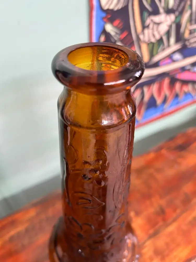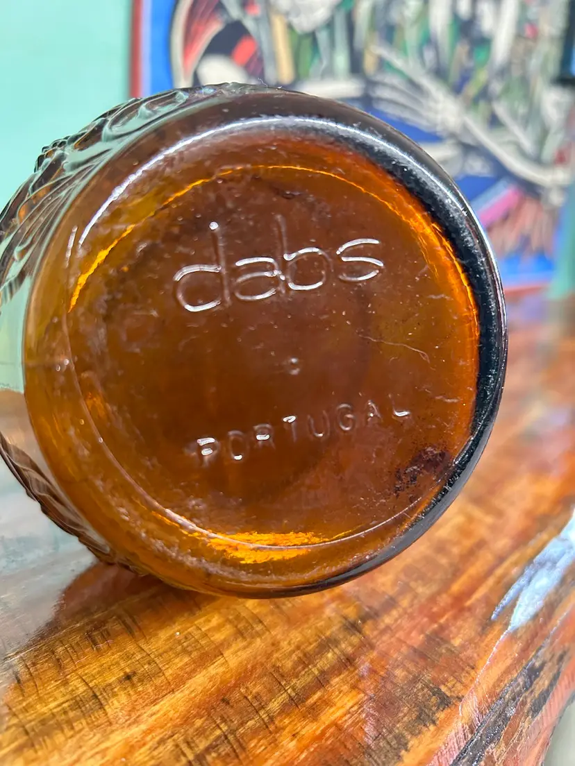 Dark Amber Dabs Portugal Genie Bottle (no stopper). Very tiny chip on top of decanter. Pic attached. Other than that excellent condition.