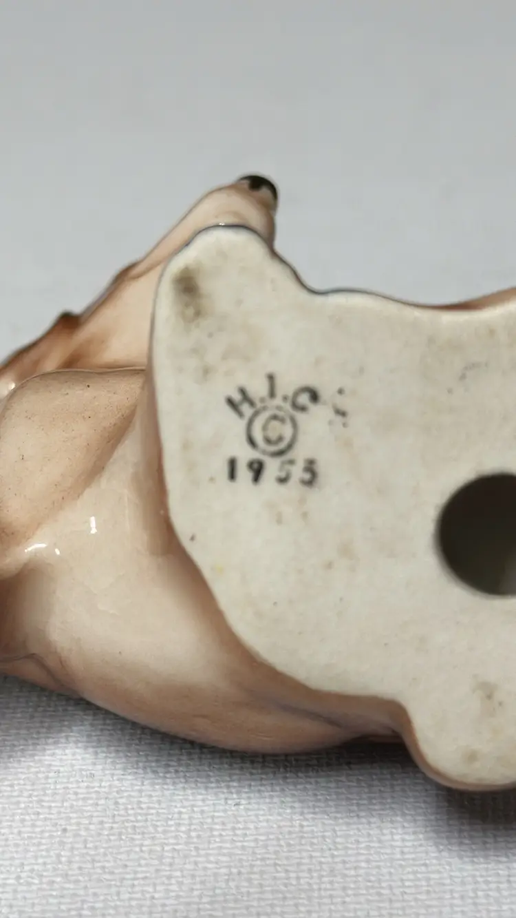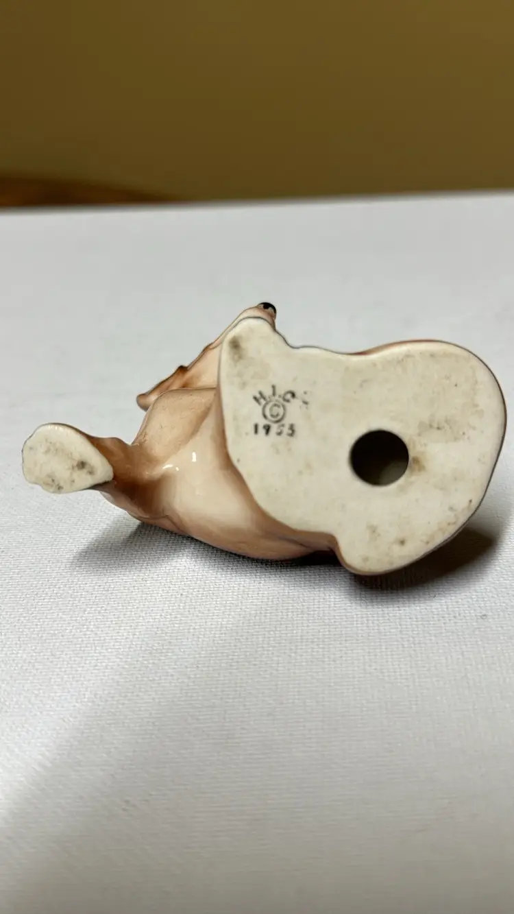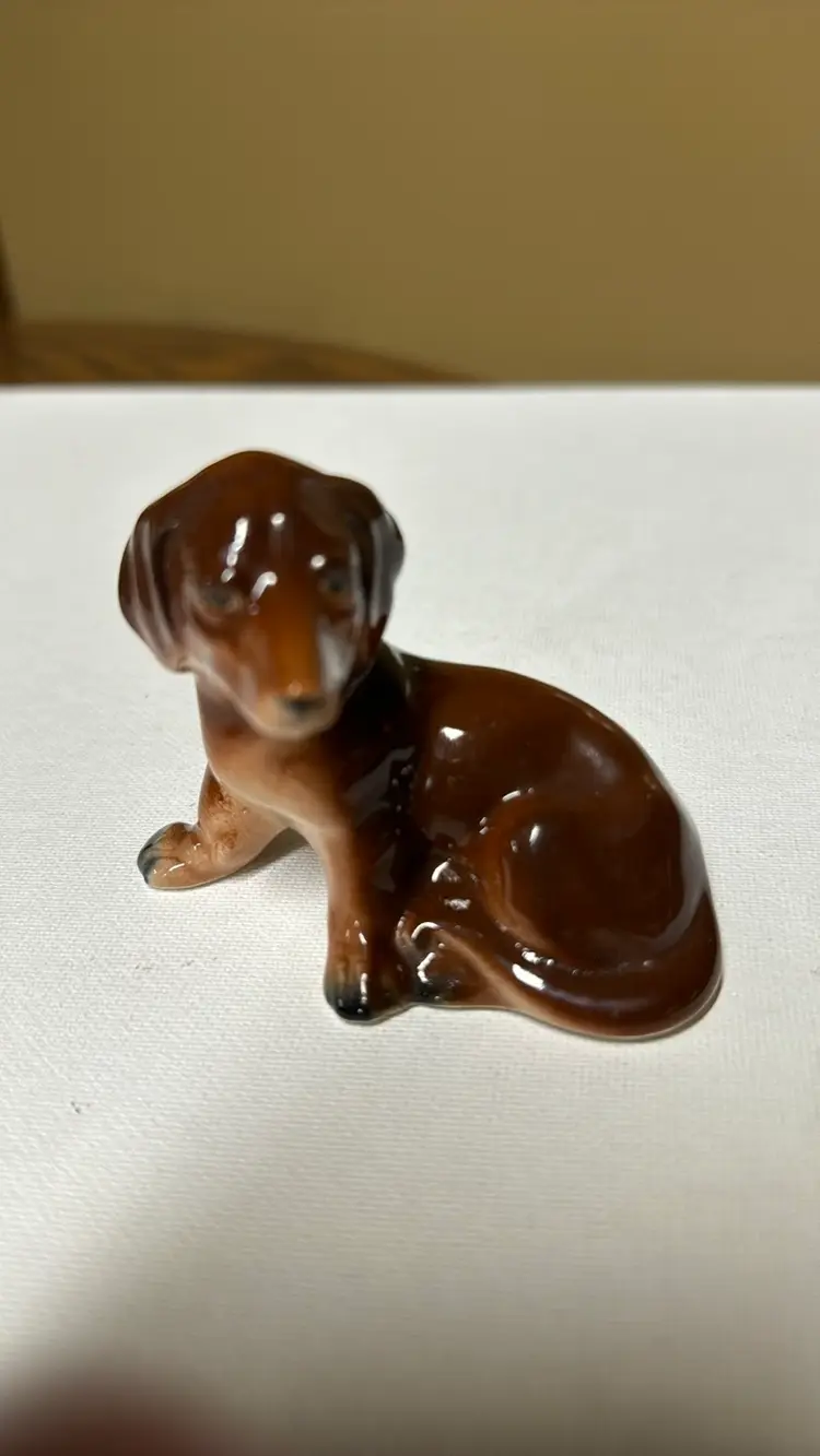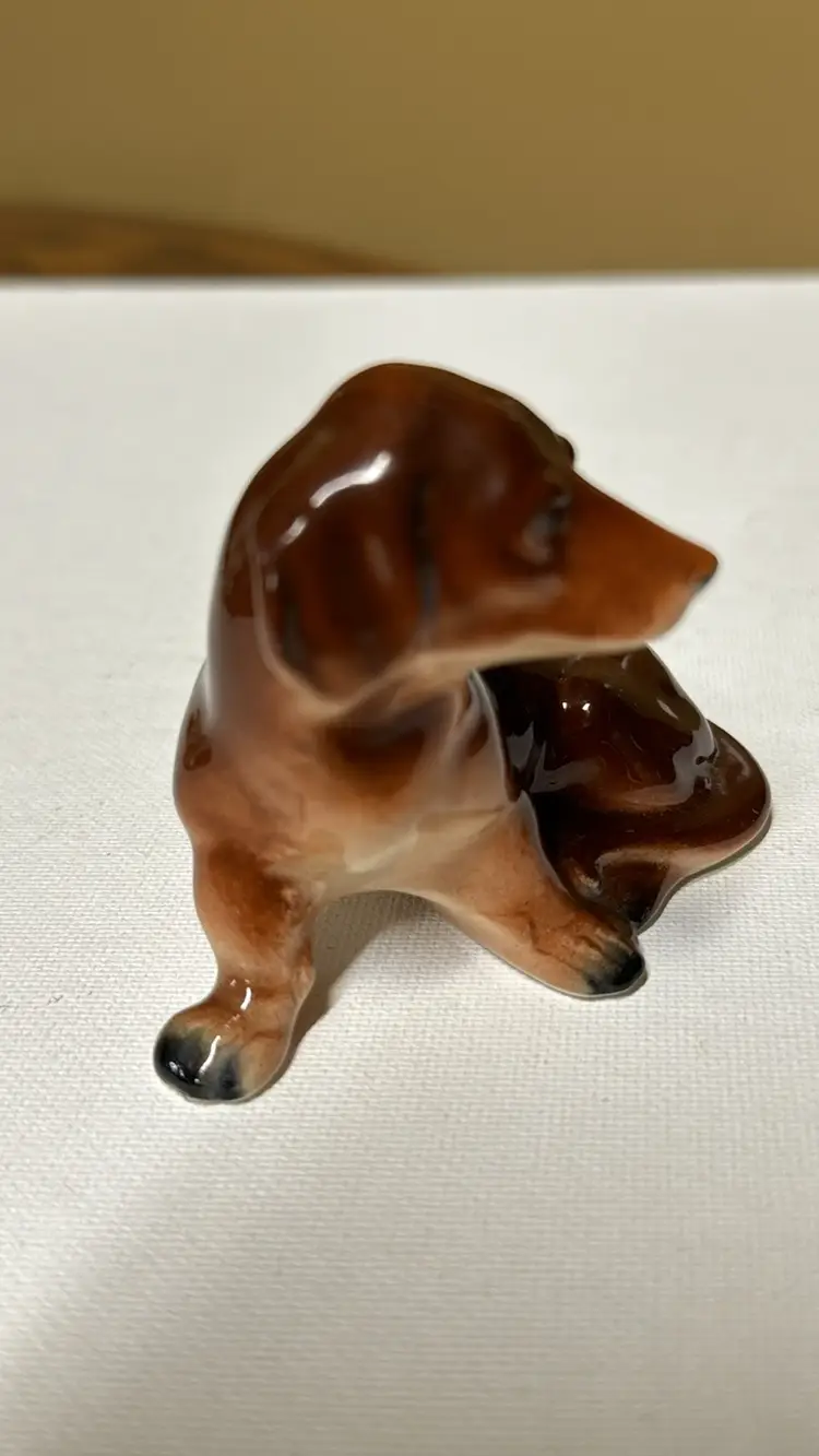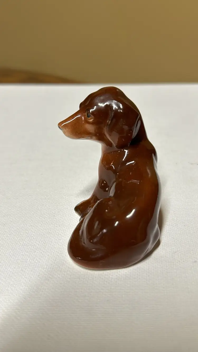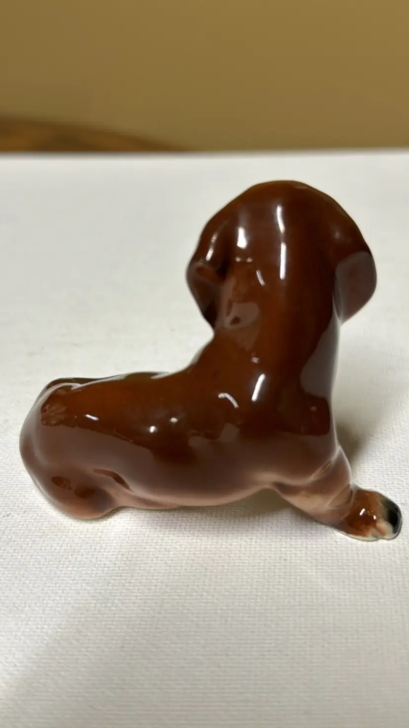 Vintage Hand Painted DACHSHUND Weiner Brown Dog Ceramic Glossy Figurine 3” tall 3.5” long Dated 1953 Adorable little dog with no breaks or chips (14820243)