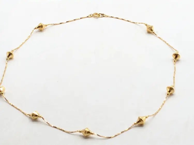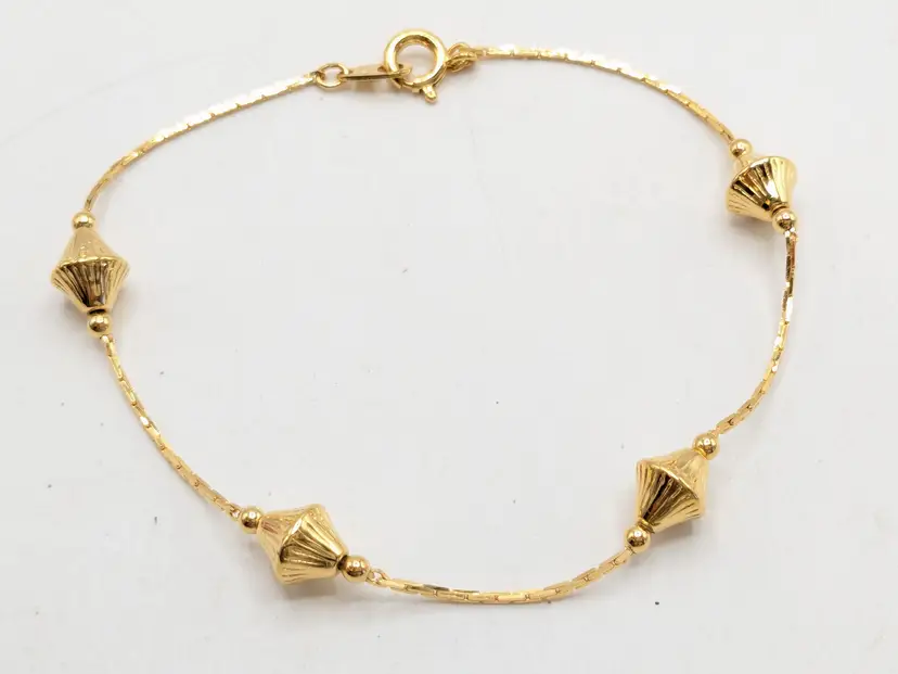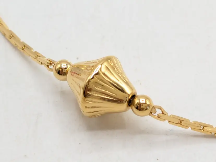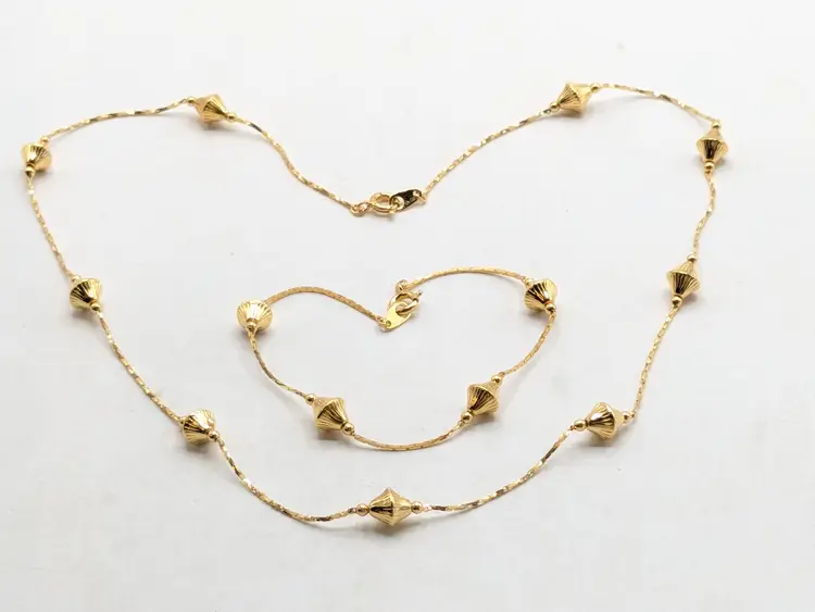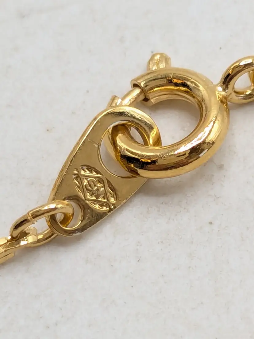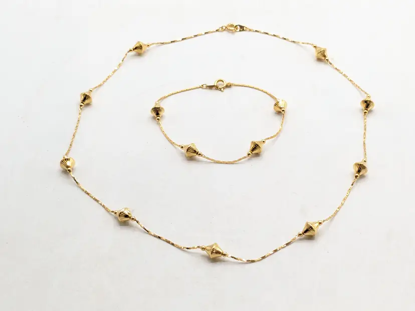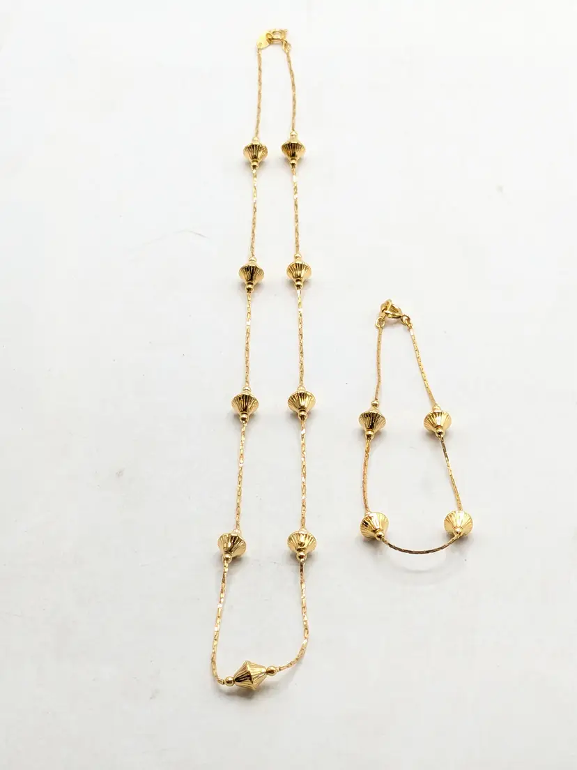 Dainty prettiness! Good condition. Gold tone is bright and shiny with no color loss. Marked SN on both. Necklace measures 18" and bracelet is a size 6 1/2". wen