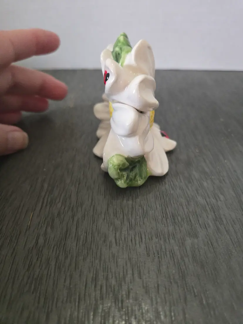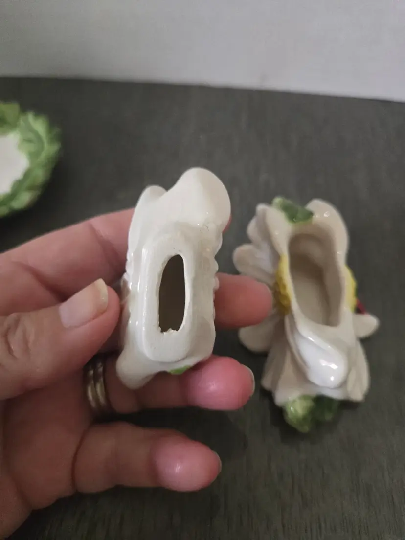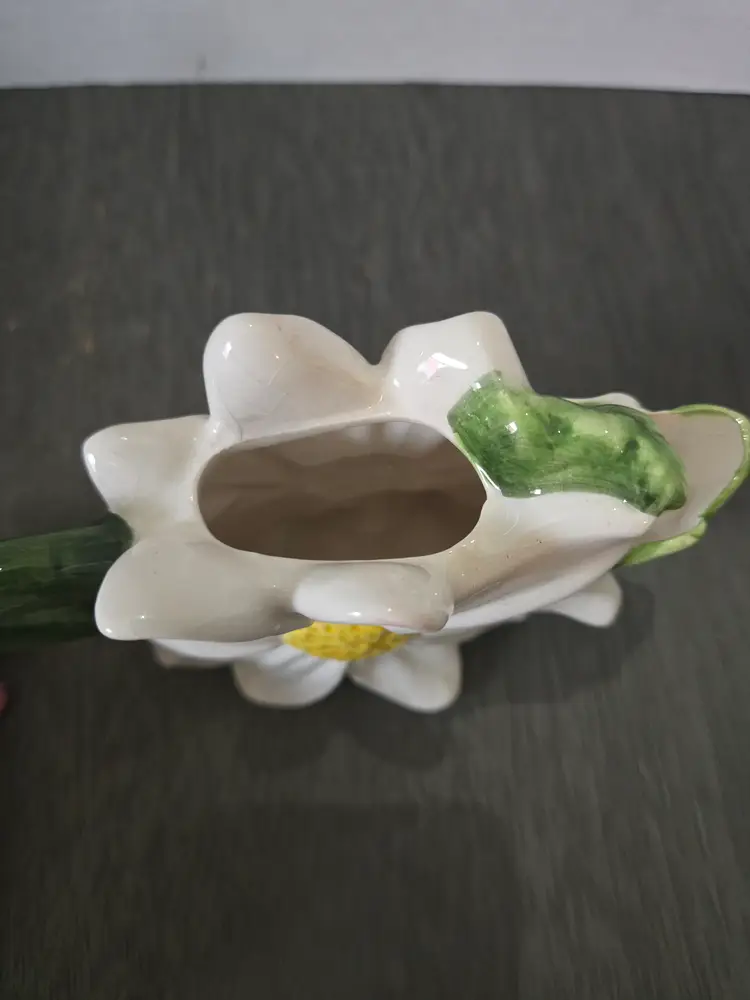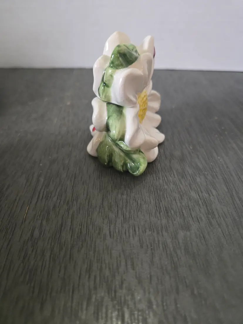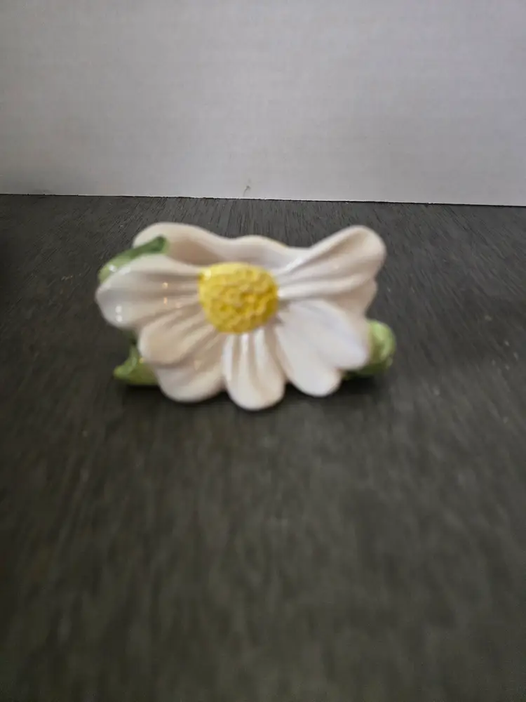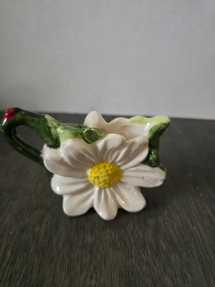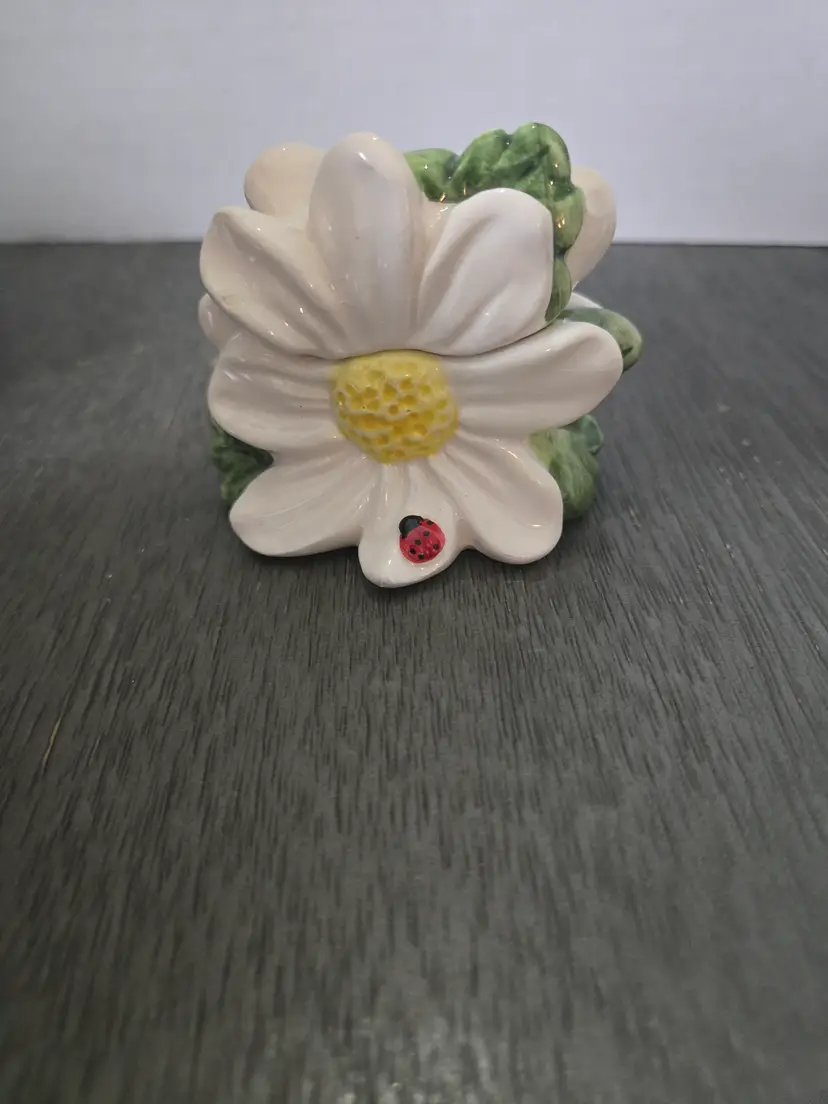 Ceramic Daisy Tea Set, 5 pc Set includes tray, Tea pot, creamer, sugar dish with lid, approximately 9" long, Teapot 5½" x 3½", creamer 3½" long x 2½" tall, Sugar dish 2½" tall x 2½" long, 2 small chips