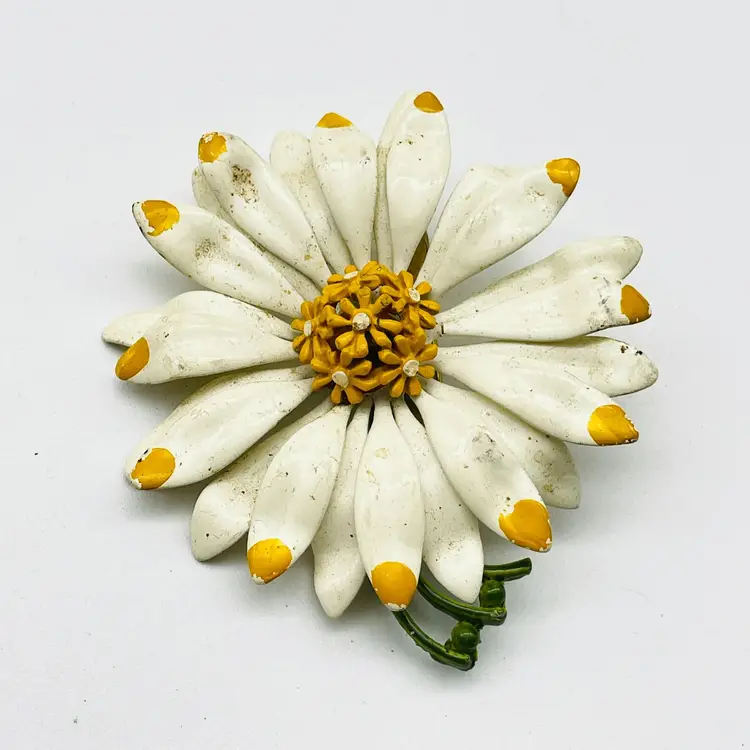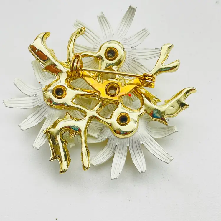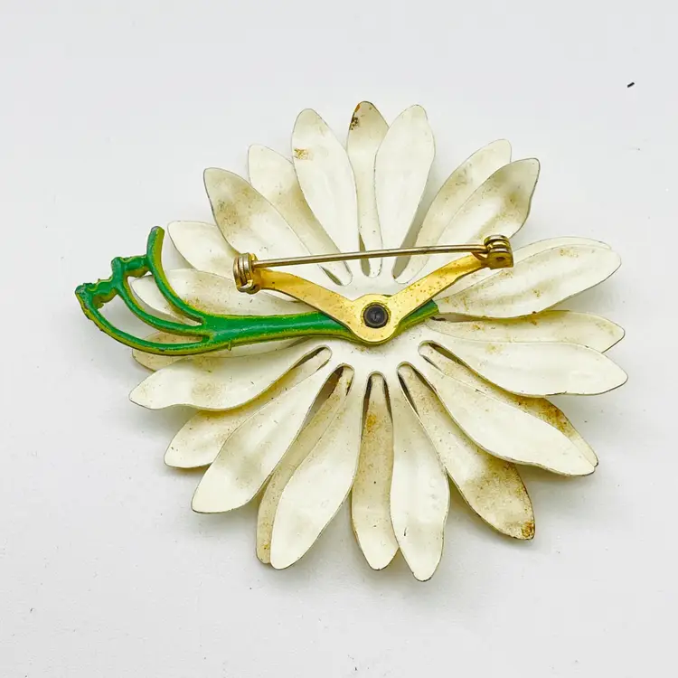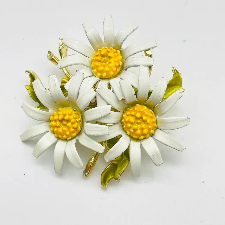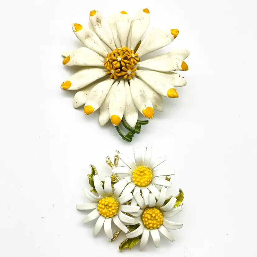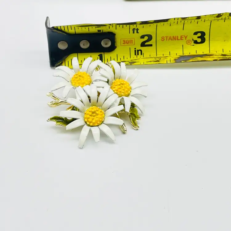 Condition is preowned 1.5 inch triple daisy brooch 2.5 inch single daisy brooch See photos