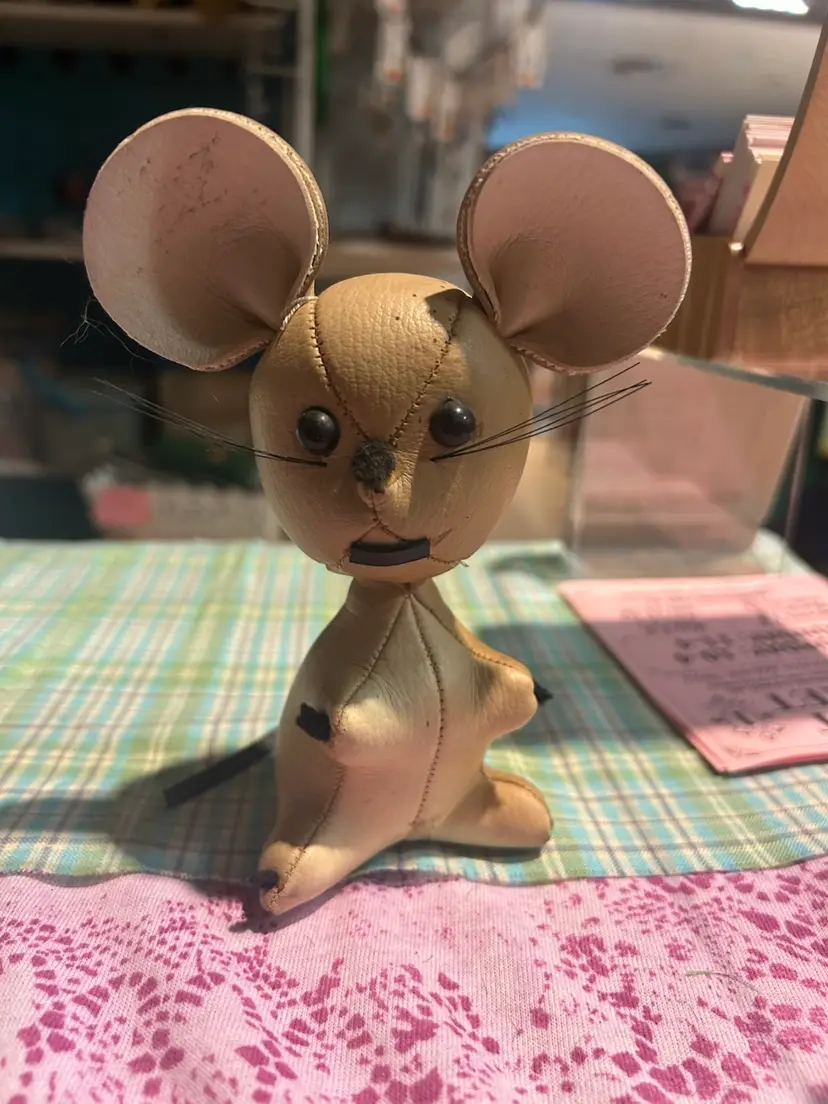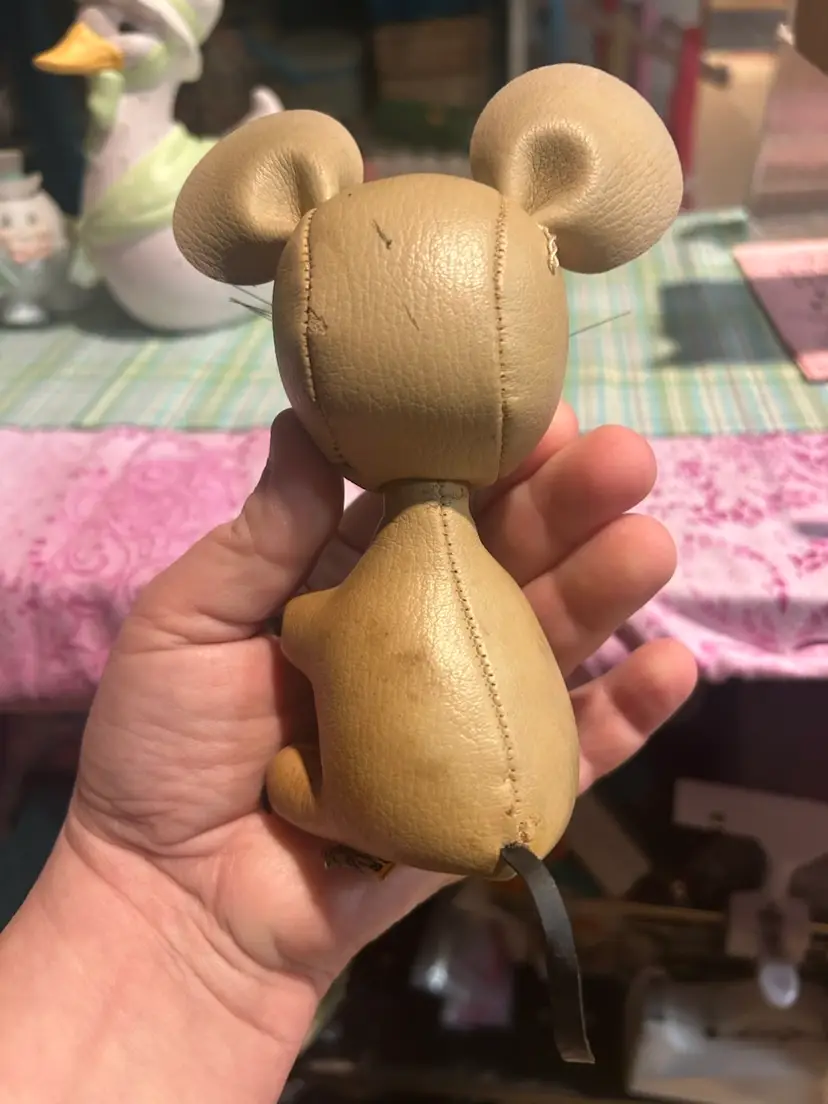 DAKIN leather pets Morty mouse from the 1960s in very good condition. Mild leather wear on ear tag has been cut off.