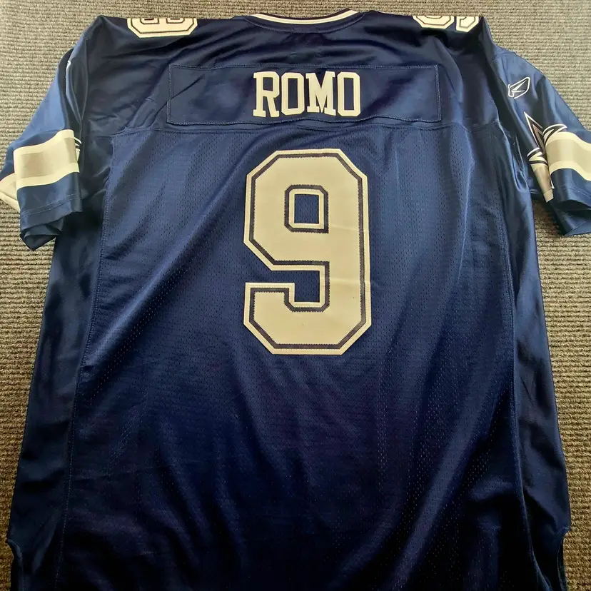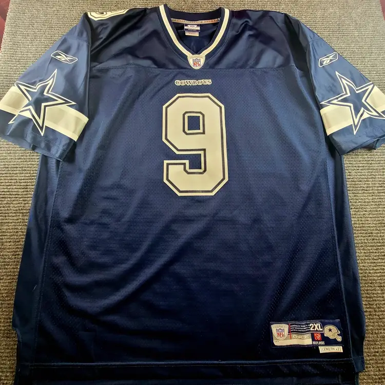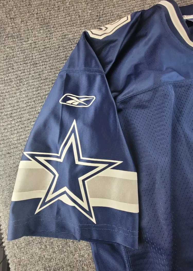 Dallas Cowboys Men's 2XL big and tall football jersey blue silver. i put 3XL cause of measurements show it could fit a 3XL. stitched and sewn jersey.