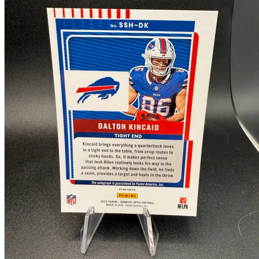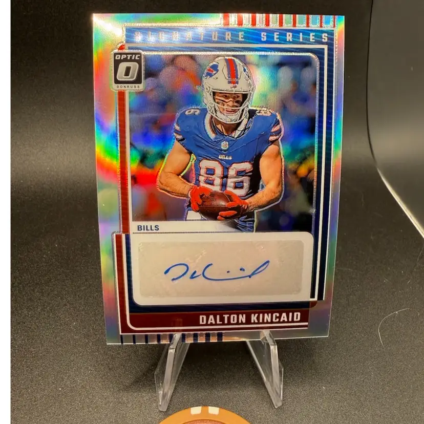 This is an autograph of Dalton Kincaid from 2025 optic release. Buffalo Bills.