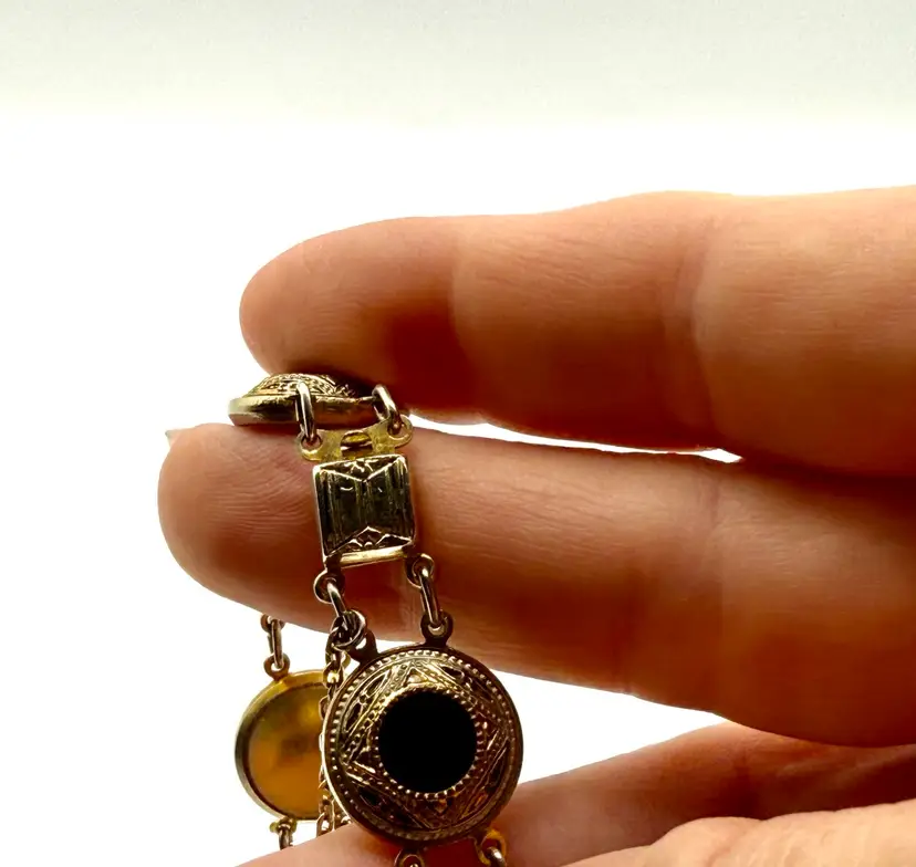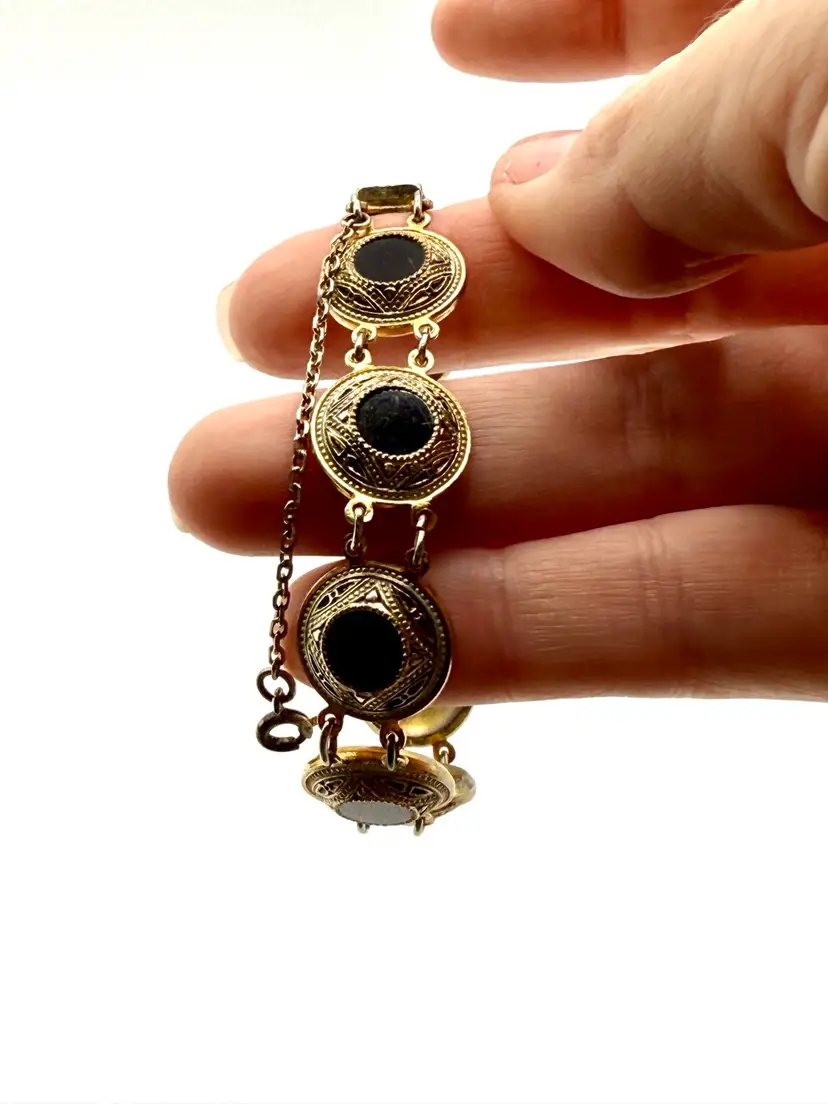 Damascene Bracelet With Chain Guard And Black Gemstone 7”